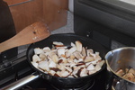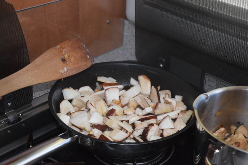 Es ist klar, dass es heute Abend Steinpilze in Rahmsoße mit Pfannkuchen gibt – und zwar bis zum Abwinken ?.