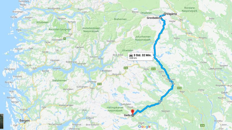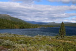 Unser Platz liegt auf knapp 900 Höhenmeter, dementsprechend ist es in der Nacht kalt geworden, heute früh hat es gerademal 3°, wir machen Heizung an! Unser Weg führt uns auf über 1.400 m, hier ist es kahl und steinig, kein einziger Baum mehr zusehen, dann wieder hinunter in ein Wald- und Seengebiet. Beides hat seine Reize und wenn nicht ein so kalter, beißender Wind wehen würde (8°), würden wir bleiben und eine Wanderung auf einem der vielen Wanderwege machen. So fahren wir über den einen oder anderen Pass bis wir in Gol ankommen und von dort weiter nach Geilo fahren. Hier befinden wir uns in einem Skigebiet, rechts und links der Straße kleine Hütten, die zu vermieten sind, überall sind Langlaufloipen und Liftanlagen. Unser Schlafplatz befindet sich wiederum auf einer Höhe von 1.000 m mit Blick auf einen kleinen See, der eher eine Pfütze ist. Die Wetterprognose ist weiterhin nicht besonders gut, für das Wochenende werden hier sogar -2° vorhergesagt. Das werden wir uns nicht antun und unsere Zeit in Norwegen, spätestens übermorgen beenden.