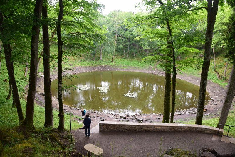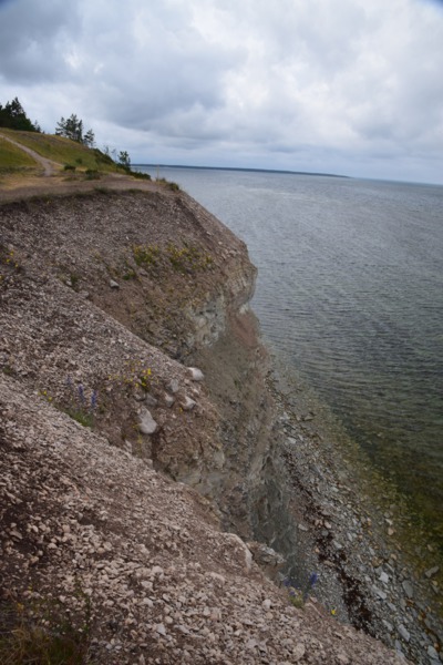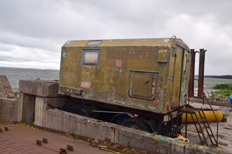 Es hat die ganze Nacht geregnet und gewindet. Heute Morgen ist nach dem Frühstück die Reparatur unserer Backofentür notwendig (sie klemmt so sehr, dass sie kaum mehr auf-/zuzumachen ist). Als Mario fertig ist hat es auch aufgehört zu regnen und wir fahren entlang der Küste, meist mit Blick auf die Ostsee, bis an die Steilküste von Panga Pank – hier spazieren wir an der Abbruchkante entlang, viel Sicht haben wir leider nicht, die Sonne lässt sich nicht blicken. Weiter geht es die Küste entlang, durch kleine Dörfer, die als solche nicht zu erkennen sind (manchmal nur 2, 3 Häuser). Unser heutiges Ziel ist der Fährhafen von Triigi (wir wollen von hier noch auf die Insel Hiiumaa). Da wir schon sehr früh in Triigi sind, machen wir noch einen Abstecher zu den Windmühlen von Angla und zum Meteoritenkrater in Kaali. Um 16.00 Uhr stehen wir wieder im Fährhafen, die Fähre kommt erst um 20.00 Uhr und wir wissen nicht ob wir Platz haben (die Buchung eines E-Tickets ist nicht mehr möglich – wenn wir Glück haben, werden Plätze für Spontanfahrer freigehalten). Unser „Gretchen“ ist durch die Schotter-/Sandwege, die heute nass und zum Teil matschig sind richtig dreckig, Mario beschließt, als wir auf die Fähre warten, diesem Dreck an den Kragen zu gehen. Mit dem Eimer holt er Wasser aus der Ostsee und wäscht bei strömendem Regen unser „Gretchen“ (natürlich ohne Reinigungsmittel)!