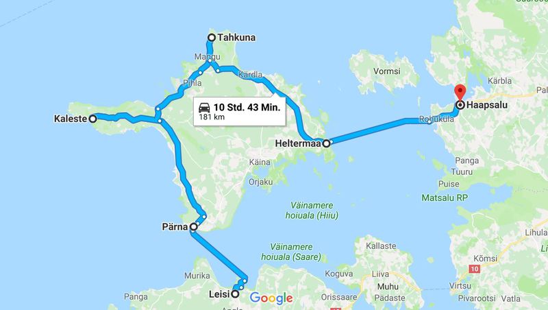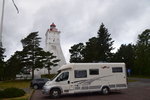Die Nacht war stürmisch und es hat ununterbrochen geregnet, trotzdem war es nie ganz dunkel. Um 5.00 Uhr scheint die Sonne, die sich dann aber für den Rest des Tages hinter den dicken Regenwolken versteckt. Wir fahren zum Leuchtturm bei Köpu, der mit seiner gewaltigen Breite sich deutlich von anderen seiner Art abhebt. Es ist der älteste noch benutzte Leuchtturm der Insel und stammt ursprünglich aus dem Jahr 1531. Bis ins 19. Jh. wurde er mit Holz befeuert, dann mit Öl und seit 1940 leuchtet elektrisches Licht. Weiter geht es zum Leuchtturm Tahkuna. Das Besondere hier ist die Gedenkstelle für die Opfer der Estonia-Katastrophe von 1994 (es ist der Ort in Estland, der der Unglücksstelle am nächsten liegt). Der Abstecher zu einem Hafen erweist sich als nicht lohneswert – vor allem dem Wetter geschuldet. Wir erreichen Kärdla, den Hauptort der Insel viel früher als geplant und besichtigen das Museum von Hiiumaa Pikk Maja (Langes Haus). Kärdla war lange Zeit von einem bedeutenden Textilbetrieb geprägt, der von der Adelsfamilie von Ungern-Sternberg betrieben wurde. Kärdla haben wir dann nur fahrend erkundigt, es hat wie aus Kübeln geregnet und der Wind hat einem die Autotür aus der Hand gerissen. Angesichts der schlechten Wetters beschließen wir, den Fährhafen in Heltermaa anzufahren, in der Hoffnung eine Fähre auf das Festland zu bekommen. Wir haben Glück, die Fähre geht eine halbe Stunde nach unserer Ankunft am Anleger – und so geht es heute schon zurück auf Festland. Hier fahren wir noch wenige Kilomater nach Haapsalu, wo wir einen Stellplatz am Badestrand finden. Von hier machen wir uns zu Fuß auf den Weg in die recht überschaubare Altstadt, wo wir Abendessen und anschließend bei strömendem Regen zurück zu unserem Auto gehen.