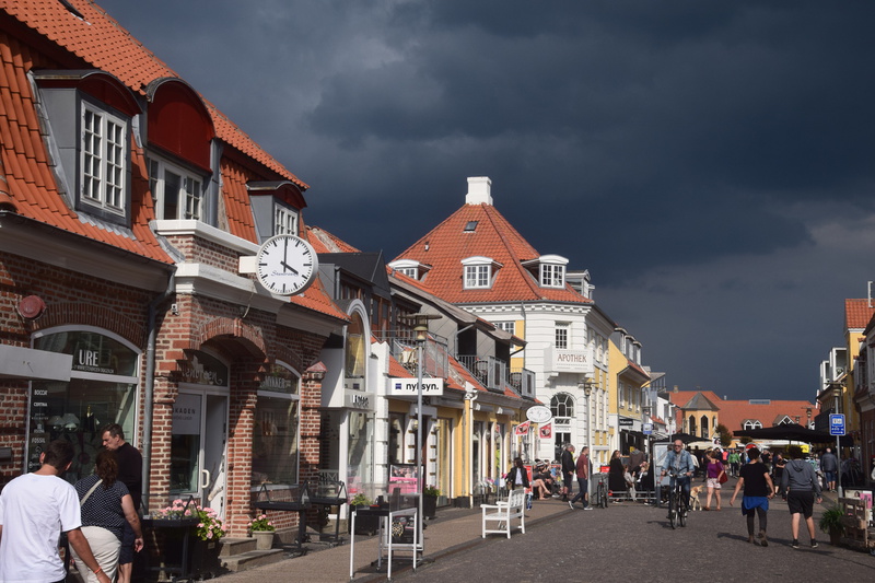 Wir haben uns für den Abend mit Horst und Jennifer Tonert in Heide verabredet. Wir waren jetzt 2 Tage auf dem Campingplatz in Skagen und ärgern uns im Nachhinein mächtig darüber – er war sehr teuer (42,-- €/Nacht) und als wir abfahren und ich unsere Chipkarten abgebe, sind noch einmal 5,-- € für die Duschen fällig ☹. Nun fahren wir wieder und haben sehr durchwachsenes Wetter, der Himmel ist und bleibt aber grau. Hinzu kommt ab und an starker Wind und Starkregen mit Gewitter. Unser Stopp in Flensburg fällt buchstäblich ins Wasser und so treffen wir bereits um 16 Uhr in Heide ein, wo wir bei schönem Wetter einen Bummel durch die Fußgängerzone machen und anschließend einen wunderschönen Abend mit Horst und Jennifer verbringen.