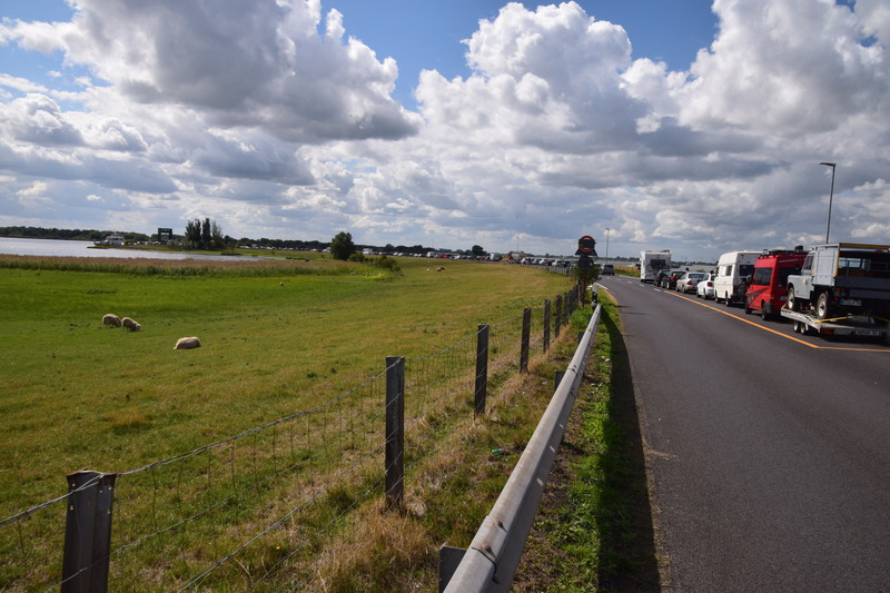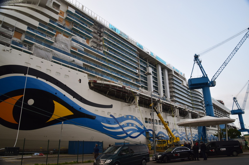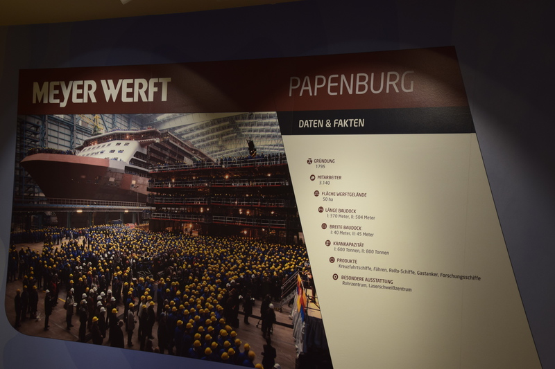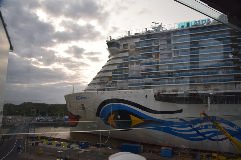 Wir verabschieden uns von Jörg und Kerstin und wollen die wohl einzige Sehenswürdigkeit von Cuxhaven, die Kugelbake, besichtigen. Vom Parkplatz bis zur Kugelbake sind es nur wenige 100 Meter Fußweg, aber nach dem Hin- und Rückweg sind wir Patschnass. Wir legen rd. 180 km bei mehr oder weniger schönem Wetter zurück und kommen nach Papenburg. Hier befindet sich die Meyer-Werft und wir haben gelesen, dass die AIDAnova im Außendock liegt und am Freitag diese Woche getauft wird. Das Werk kann nur in Gruppen besichtigt werden und so buchen wir eine Besichtigungstour. Wir werden mit vielen anderen mitten in Papenburg mit dem Bus (mit einer 20 minütigen Verspätung) abgeholt. Die Besucherbetreuerin ist schon im Bus mit dabei und erzählt die ersten Dinge schon während der Fahrt. Die Führung durch die Werft dauert fast 2 Stunden und ist sehr informativ. Die ganze Werftanlage ist von einer Dimension die gigantisch ist. Es werden gleichzeitig mehrere Schiffe gebaut. Die neue AIDA ist das größte Kreuzfahrtschiff, das hier in Papenburg je gebaut wurde. Wenn da Schiff auf Reisen geht finden darauf knapp 6.000 Passagiere und 2.000 Mitarbeiter Platz. Voll mit Informationen und Eindrücken kehren wir zu „Gretchen“ zurück und beschließen, die Nacht auf dem Parkplatz an der alten Werft zu verbringen.