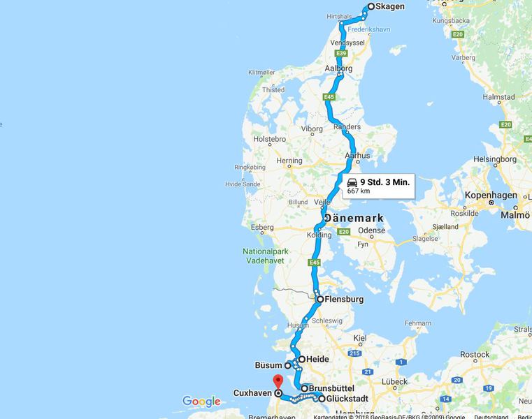 Wir starten auch heute wieder mit Regen in den Tag. Nach ca. 40 km erreichen wir Brunsbüttel – hier scheint die Sonne zwischen den dicken Wolken durch und wir gehen zur Promenade an den Nord-Ostseekanal um hier den Schleusenvorgang von drei großen Frachtschiffen zu beobachten – was schon sehr beeindruckend ist. Auf dem Rückweg zu „Gretchen“ beginnt es wieder zu regnen und so fahren wir nach Glückstadt um dort mit der Fähre über den Kanal zu kommen. Cuxhaven erreichen wir am späten Nachmittag. Hier wollen wir Jörg (den wir mit seinen Jungs in Finnland kennengelernt haben) zu besuchen. Mit ihm und seiner Frau verbringen wir einen schönen Abend. Da wir bei den in der Einfahrt stehen können, brauchen wir nicht mehr zu fahren.