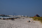 Heute fahren wir nur ca. 50 km bis nach Skagen wo wir uns für 2 Nächte auf einem Campingplatz anmelden. Unser Platz liegt direkt hinter der Düne, nur wenige Schritte vom Meer. Die Temperaturen sind sehr angenehm, es weht ein leichter Wind. Nach einem kurzen Spaziergang am Strand und einem Bad im Meer liegt direkt vor unserer Nase eine Robbe und sonnt sich, sie lässt sich überhaupt nicht stören, so dass wir schöne Bilder machen können. Wir setzen uns in die Sonne und beobachten die Robbe, bis sie sich dazu entschließt wieder im Wasser abzutauchen. Wir nehmen die Fahrräder, fahren am Leuchtturm vorbei bis Grenen, dort stellen wir die Fahrräder ab und gehen zu Fuß zu der Stelle wo Skagerrak und Kattegat aufeinander treffen. Den Rückweg zu unseren Rädern machen wir nicht zu Fuß, sondern mit einem Bulldog mit überdachtem Anhänger. Wir fahren nun wieder mit den Fahrrädern zurück, vorbei am Campingplatz bis nach Skagen, einem schönen Ort mit lebhafter Fußgägerzone, vielen kleinen Geschäften und Restaurants. Natürlich darf die Fahrt entlang am Hafen mit seinen tollen, nicht allzu kleinen Schiffen, nicht fehlen. Hier befindet sich ein Fischrestaurant neben dem andern und wir beschließen zu bleiben und hier zu essen. Satt und zufrieden geht es zurück zu „Gretchen“.