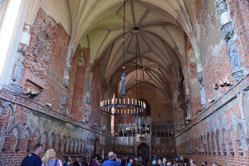 Bei strahlendem Sonnenschein machen wir uns kurz nach 9 Uhr auf den Weg die Marienburg zu besichtigen. Wir kaufen Tickets und nehmen uns auch jeweils ein Audioguide mit. Die Runde durch die Burg dauert gut 3 Stunden! Die Burg ist eine der mächtigsten Festungsanlagen Europas, Hauptsitz des Deutschen Ritterordens von 1309 – 1457. Die bei Kämpfen am Ende des Zweiten Weltkriegs stark beschädigte Burg wurde ab 1960 von den Polen aufwendig restauriert und vor einigen Jahren von der UNESCO zum Welterbe erklärt.
