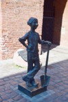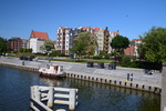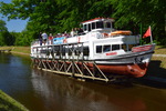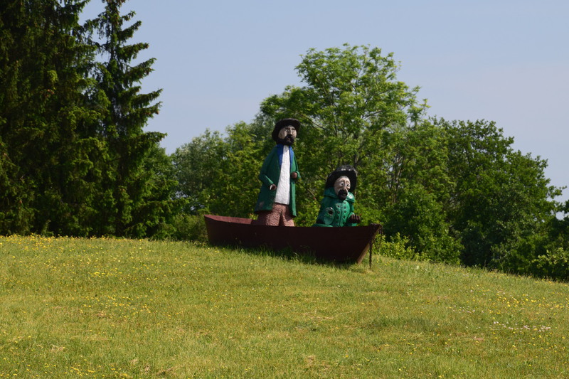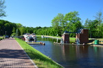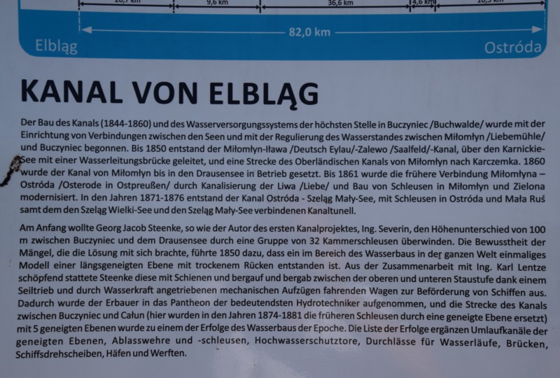 Am frühen Nachmittag packen wir zusammen und fahren nach Elblag. Wir machen eine Bummel durch das Markttor in die Altstadt und hier bis zur Kirche St. Nicolai. Auf dem Rückweg zum Parkplatz gehen wir noch zur Statue des Bäckergesellen. Wir reiben über seine Bronzenase, was Glück bringen soll. Das Denkmal ist ich gewidmet, weil er am 8. März 1521 die Stadt durch seine Warnung vor dem Einmarsch der Deutschordensritter bewahrte. Unser weiterer Weg führt uns an den Oberländischen Kanal, wo wir die Rollberge anschauen wollen, bzw. zuschauen wollen wie Schiffe, die den Kanal befahren die Rollberge (!) hinaufgebracht werden. Die Schiffe werden mit Hilfe eines Seiles und eines Wagon auf Schienen über die Wiesen gezogen, dabei überwinden sie um die 100 Höhenmeter. Das ganze geschieht nur mit Wasserkraft.
