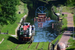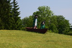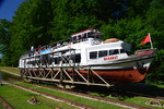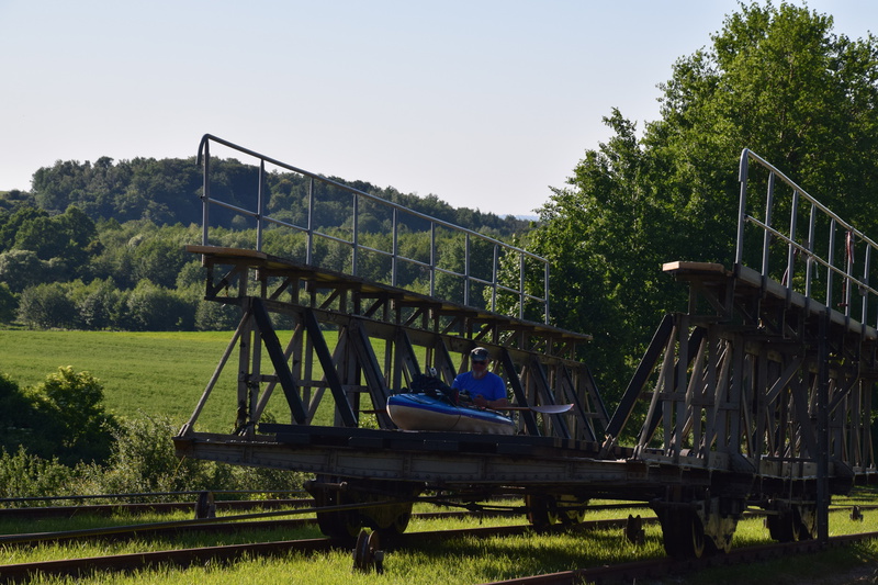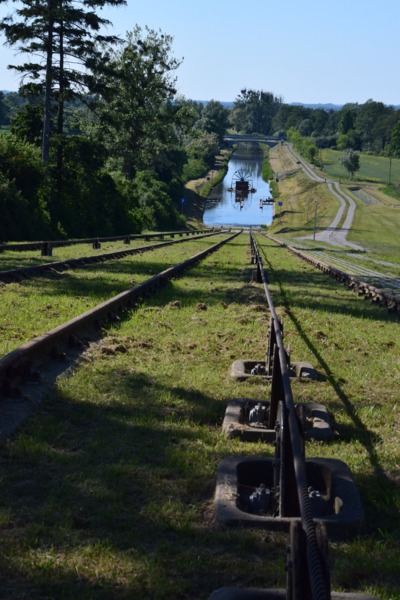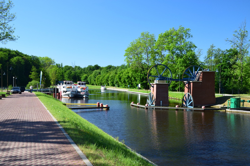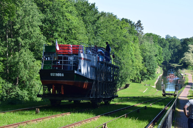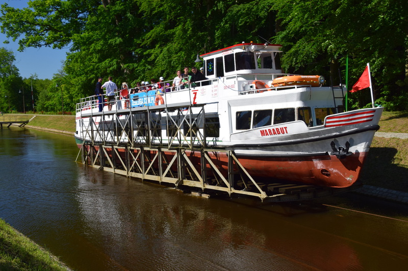 Wir starten gegen 9 Uhr mit dem Fahrrad und fahren entlang des Oberländischen Kanals um „Schleusenvorgänge“ zu beobachten. Der Radweg führt die Straße entlang, weg vom Kanal – Marios Meinung, das kann nicht sein, also geht es für uns Querfeldein! Wir kommen zum Rollberg bei Buchwald und kommen gerade rechtzeitig, das Spektakel zu beobachten. Das Schiff fährt auf eine Art Lore, diese wird über ein Zugseil mit Wasserantrieb auf den Berg gezogen und auf der anderen Seite wieder hinunter gelassen. Sobald die Lore wieder in das Wasser eintaucht, fährt das Schiff heraus und setzt seinen Weg fort. Weiter geht es mit dem Fahrrad durch einen Wald und wir kommen zum nächsten Rollberg. Von dort fahren wir auf dem ausgeschilderte Radweg zurück zu unserem „Gretchen“.