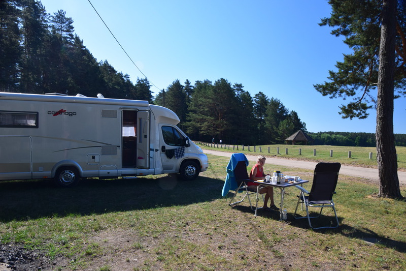 Wir beginnen unseren Tag mit einem Bad im See, danach gibt es erst Frühstück. Nach diesem traumhaften Start in den Tag machen wir uns auf den Weg nach Litauen. Wir haben noch ca. 14 Zloty, die wir vor dem Grenzübertritt im letzten polnischen Ort in Eis verwandeln wollen – dies gelingt uns nicht! Der vermeintlich letzte polnische Ort (Ogrodniki) auf unserer Straßenkarte, war so klein (wahrscheinlich nur 3 Häuser), dass wir ihn nicht als Ort wahrgenommen haben – und schwups waren wir an der Grenze. Die Durchfahrt ist so unspektakulär wie von Deutschland nach Frankreich. Einzig ein Polizeifahrzeug stand im Grenzbereich.