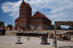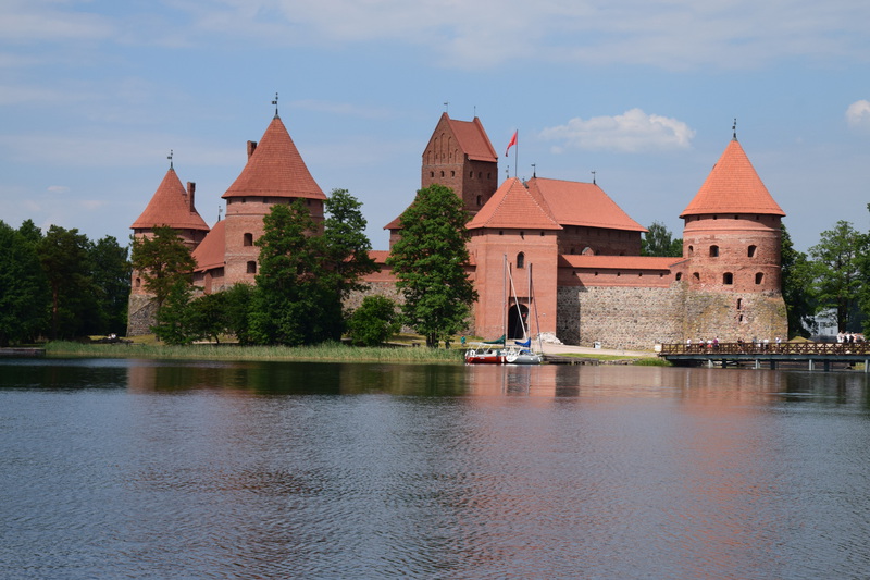 Einen kurzen Bummel mit Kaffeepause machen wir in Alytus. Von dort aus geht es durch eine schöne Landschaft mit vielen Seen und alten Häusern. Der Stil dieser Häuser unterscheidet sich stark zu dem Baustil in Polen. Unser Etappenziel, Trakai, liegt ca. 30 km vor der Hauptstadt Vilnius. In Trakai besuchen wir die Burg von Trakai, sie gleicht einer Bilderbuchburg, die malerisch auf einer Insel im Norden des Galvès-Sees liegt. Am See vor der Burg stehen ein paar typische Holzhäuser der Karäer (die kleinste Volksgruppe Litauens, zu der sich heute nur noch 150 Menschen zählen). Die der Straße zugewandte Hausseite zeigt immer den Giebel des Gebäudes sowie 3 kleine Fenster. Das erste Fenster ist traditionell Gott, das zweite dem Großfürsten Vytautas dem Großen (1392 – 1430) und das dritte schließlich dem Hausherr gewidmet.