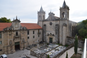 Straße nach Ribadavia, hier wollen wir eine Burg besichtigen, die leider verschlossen ist, deshalb machen wir einen Spaziergang um die Kirche. Weiter geht es nach Ourense, eine Stadt, die wir schnell