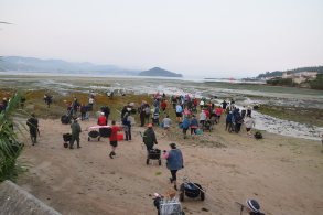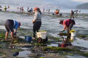 Eine Sirene ertönt und alle laufen über den Strand in Richtung Meer, im Watt kommen die Rechen zum Einsatz – die Herzmuschen werden heraus gerecht und gleich nach Größen sortiert in die Eimer