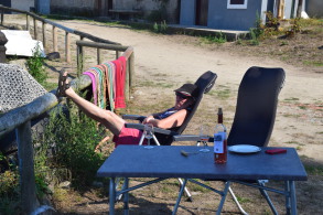 Standplatz, wir richten uns ein und machen einen größeren Spaziergang. Wir können doch tatsächlich noch in der Sonne sitzen
