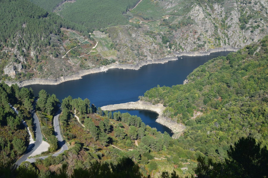 hinter uns lassen. Nach Ourense kommt der schönste Teil der Stecke. Der Rio Mino und der Rio Sil treffen aufeinander. Wir durchfahren die Schlucht. Die Ausblicke auf den gestauten Fluß, die