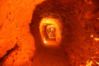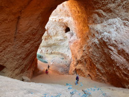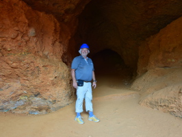 Weiter fahren wir zu den Galerien von Orellan hier stehen wir an einem Aussichtspunkt mit Blick auf die roten Gipfel und in die tiefen Schluchten. Wir betreten, ausgerüstet mit Helmen die