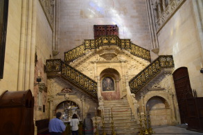 Geld ein und bekommt dann das Ticket). Nun machen wir uns auf den Weg in die Altstadt, vorbei an Denkmal und verschiedenen Plastiken bis wir über den Plaza de Mayor zur gotischen Kathedrale