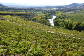 mitten durch das Weinland, das eines der größten Europas ist. Auf einer Anbaufläche von 60.900 ha produzieren über 20.000 Winzer zu 85 % Rotwein, der Rest ist Rosado und Weißwein. Das Gebiet liegt am