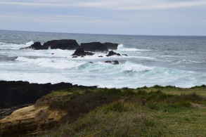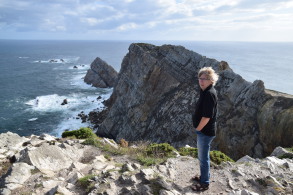 peitschen gegen die Felsen. Weiter fahren wir zum Cabo Bhusto, wo wir wiederum einen Spaziergang machen. Beim Rückweg vom Leuchtturm fährt Mario ein kurzes Stück auf die falsche Straße - das