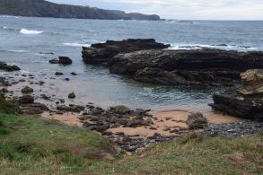 Bucht, „Playa Verdicio. Hier stellen wir uns oberhalb der Klippen auf eine Wiese, wir werden hier auch die Nacht verbringen. Ein Bummel, den Strand entlang und wieder zurück. Danach gibt es in der