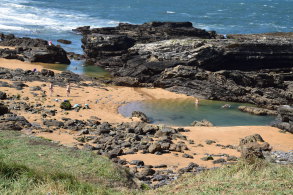 Die Bucht füllt sich gerade, die Flut hat eingesetzt. Unsere Badegumpe hat sich inzwischen mit Wasser gefühlt, vom kleinen Strand ist nichts mehr zu sehen.