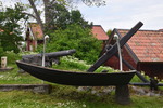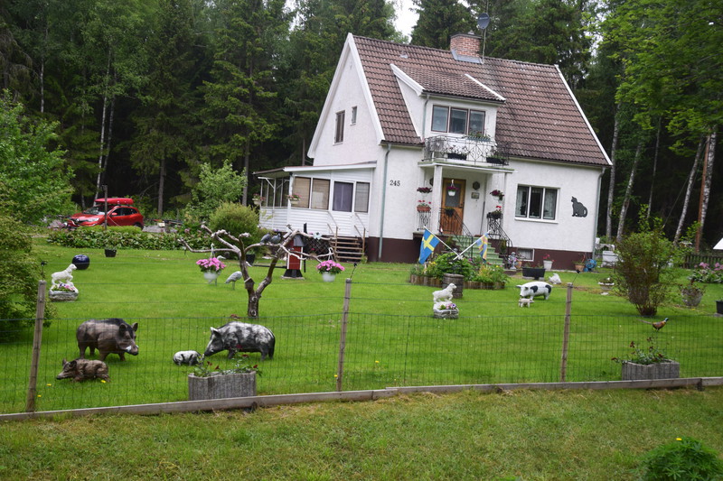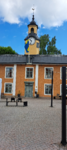 Heute fahren wir mehr oder weniger spazieren, ein klares Ziel haben wir nicht. Deshalb verlassen wir auch die Hauptverkehrsstraße und kommen zu einer schönen Bucht, leider ist hier übernachten nicht erlaubt und so geht es nach kurzer Pause weiter. An einem Fluss geht es in eine Richtung zu einem Campingplatz und in die andere zu einem Stellplatz. Wir schauen uns beides an, aber auf Campingplatz haben wir keine Lust und der Stellplatz überzeugt uns nicht. Unser Weg führt uns nach Lövstabruk, dieser kleine Ort birgt für uns eine sehenswerte Überraschung. Schon bei der Einfahrt geht es durch ein Tor und dann sichten wir eine große Parkanlage mit Glockenturm. Sofort stoppen wir und lenken „Gretchen“ auf einen Parkplatz. Wir entnehmen einer Informationstafel, dass es sich um eine Villa (heute Museum, welches allerdings geschlossen ist) handelt. Die Gebäude um die große Villa herum haben ganz unterschiedliche alte Bedeutungen, eines davon ist das Haus des Schmiedes.