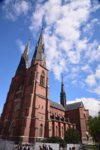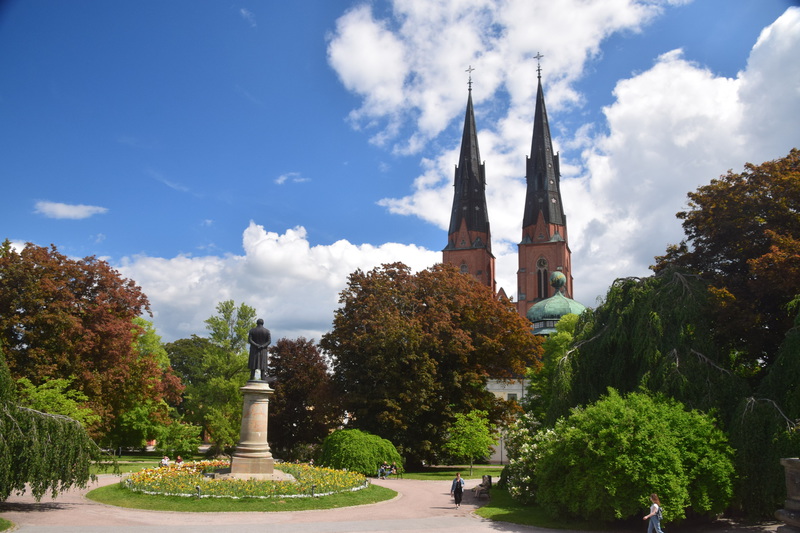 Heute geht’s nach Uppsala! Um 11.30 Uhr ist „Gretchen“ geparkt und das Parkticket erfolgreich gelöst (Parkticket lösen geht in Schweden fast immer nur über Internet; EasyPark oder andere ParkApp). An Fyrisan-Bach und Stadtgarten entlang laufen wir zur Innenstadt, die sehr überschaubar ist. Noch bevor wir zum Dom kommen, der mit seinen beiden spitzen Türmen schon von weitem sichtbar ist, machen wir einen Abstecher zur hl. Dreifaltigkeitskirche mit Fresken aus dem 15. Jahrhundert.