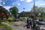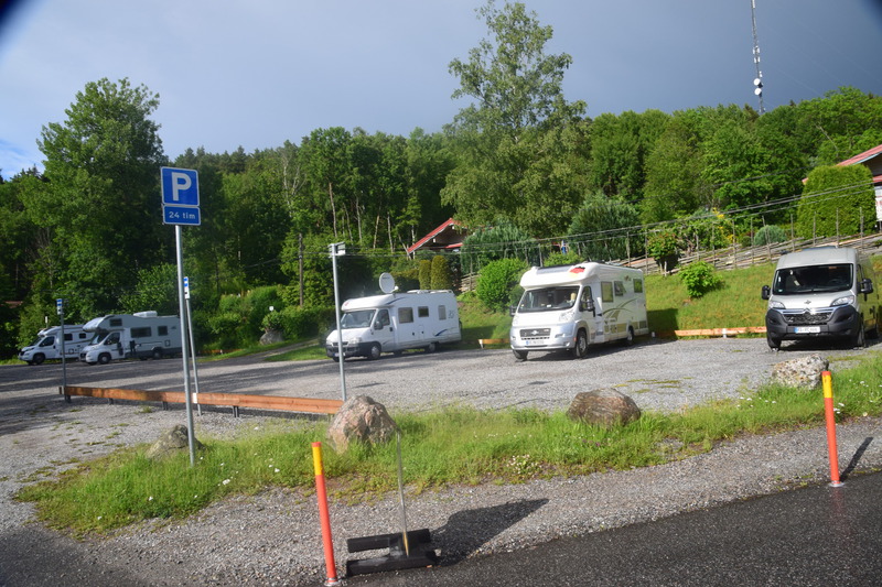 Jetzt fassen wir Öregrund als heutiges Ziel ins Auge. Als wir ankommen, erleben wir etwas für uns völlig ungewohntes – da Nationalfeiertag ist, ist hier richtig was los. Da die sich hier befindenden Stellplätze im Moment als wir ankommen nicht anfahrbar sind, parken wir „Gretchen“ etwas außerhalb und gehen zu Fuß. Im Hafenbereich ist der Betrieb am größten: hier werden Schnellboote für Rennen vorbereitet. Wenige Straßen weiter marschiert die Musikkapelle zum kleinen Schifffahrtsmuseum. Wir hören zu, als ein Herr beginnt eine Ansprache zu halten bummeln wir weiter. Als wir wieder im Hafenbereich ankommen hat das Rennen begonnen. Zum Zuschauen ist das allerdings eher langweilig, trotzdem setzen wir uns auf die Felsen und genießen die Sonne. Auf dem Weg zu „Gretchen“ sichten wir einen Stellplatz, nur getrennt durch einen kleinen Platz mit Picknicktischen, vom Wasser getrennt. Hier fahren wir her und haben Glück, dass wir auf dem Platz die ersten sind und somit auch in vorderster Reihe stehen. Hier genießen wir den Abend mit Sonnenuntergang.