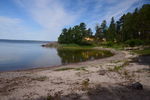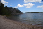 Bevor wir Stockholm verlassen steuern wir noch das 12 km vom Zentrum entfernte Schloss Drottningholm an. Schloss Drottningholm ist der Wohnsitz der schwedischen Königsfamilie und kann teilweise besichtigt werden. Wir begnügen uns mit einem Rundgang durch die Gärten um das Schloss herum und sehen den „Aufmarsch“ von 4 Wachmännern in traditioneller Uniform und Gewehr, eine Wachablösung sehen wir leider nicht. Nun geht es in die entgegengesetzte Richtung nach Gustavsberg und von dort über Brücken über einige Schäreninseln bis Stavsnäs, dem äußersten Punkt, der mit dem Auto anfahrbar ist. Ein kurzer Bummel zur Badebucht, in der sich Taucher zu einem Tauchgang bereit machen, und schon ist das Erkunden beendet. Wir machen uns auf den Rückweg, diesmal auf der Autobahn an Stockholm vorbei bis Södertälje. In der Sodra Brökfjärden finden wir, nur durch eine große Liegewiese mit Grillstellen vom Wasser getrennt unseren Platz. Mario geht wieder einmal baden und behauptet, dass das Wasser mindestens um 2° wärmer ist, als bei seinem letzten Bad.
