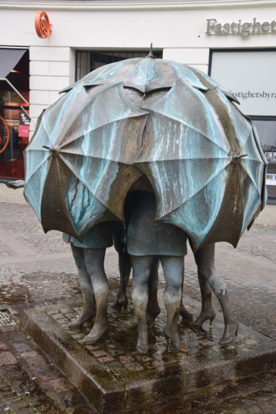 Trelleborg – wir sind in Schweden angekommen. Unser erster Weg führt uns zur Wikkingerburg „Trelleborgen“ – leider gibt es außer Holzpalisade und Eingangstor nichts zu sehen. Anschließend machen wir einen Bummel durch die Stadt, kommen vorbei am Marktplatz mit seinem Wasserturm und gelangen in die kleine Fußgängerzone mit Geschäften und Restaurants und dem schönen „Regenschirmbrunnen“. Ein Einkauf im Supermarkt schließt den Bummel ab. Zurück bei „Gretchen“ starten wir in Richtung Malmö. Machen jedoch den Umweg zur Halbinsel Falsterbo, wo wir unseren ersten Übernachtungsplatz in Schweden finden. Kaum stehen wir, beginnt es zu regnen – herzlich willkommen in Schweden!! Trotz Regen haben wir einen schönen Sonnenuntergang.