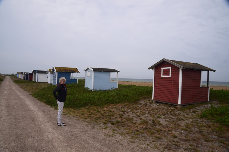 Bevor wir Halmstad verlassen füllen wir Wasser nach, entleeren unseren Abwassertank und gehen danach einkaufen. Schon nach wenigen Kilometern biegen wir von der Hauptstraße ab und befahren ein „Sträßchen“ (gerade mal etwas breiter als unser „Gretchen“) um zur ersten und einzigen Sehenswürdigkeit des Tages zu gelangen. Wir stellen „Gretchen“ am Straßenrand ab und laufen über einen Trampelpfad zum Ganggrab von Tolarp. Dieses Gigantengrab ist ca. 4000 Jahre alt und besteht aus wuchtigen Felsklötzen, die in T-Form an- und übereinander gestapelt sind. Die nächsten Kilometer bleiben wir auf der kleinen Straße, kommen für ein kurzes Stück auch wieder auf Schotterpiste um danach wieder die Hauptstraße zu erreichen. An Simlangsdalen vorbei fahren wir weiter bis Skeen und erreichen kurz danach unseren ersten großen See. Wieder auf schmaler Straße vorbei an schönen Häusern gelangen wir in Bolmstad direkt an den Bolmensee. Auf dem großen Parkplatz direkt am See stellen wir „Gretchen“ ab und machen einen Bummel durch den Ort – es gibt hier weder Bäcker noch Einkaufsladen und schon gar kein Restaurant, es gefällt uns und so beschließen wir bereits um 14 Uhr unsere Tagesetappe. Inzwischen schafft es die Sonne immer wieder einmal durch die Wolken, die schließlich vom Wind verblasen werden. Aber leider keine wirkliches Badewetter, die Lufttemperatur liegt bei gerade mal 13°, gefühlt ist es aber noch kühler. Ich setze mich auf eine Bank (windgeschützt durch eine kleine Hütte) und lese, Mario bummelt durchs Hafengelände. Immer wieder kommen Autos, drehen eine Runde über den Parkplatz und fahren wieder. Wir beobachten 2 junge Männer, die mit Angelausrüstung ausgestattet ein kleines Boot besteigen und auf den sehr aufgewühlten See hinaus fahren. Später als die beiden zurückkommen haben wir noch Spaß mit den beiden. Wie sie ankommen haben wir nicht mitbekommen. Jedoch sehen wir die beiden plötzlich in voller Montur im Wasser in Ufernähe stehen und sich mit dem Boot abmühen – wir fragen ob wir helfen können, was gerne angenommen wird. Einer der beiden kommt mit dem Seil auf uns zu, rutscht auf einem Stein aus und nimmt somit ein Vollbad. Obwohl beide inzwischen richtig nass sind haben sie ihren Spaß. Mario steht auf dem Steg, nimmt das Seil und hilft so, das Boot an die richtige Stelle zu bringen.