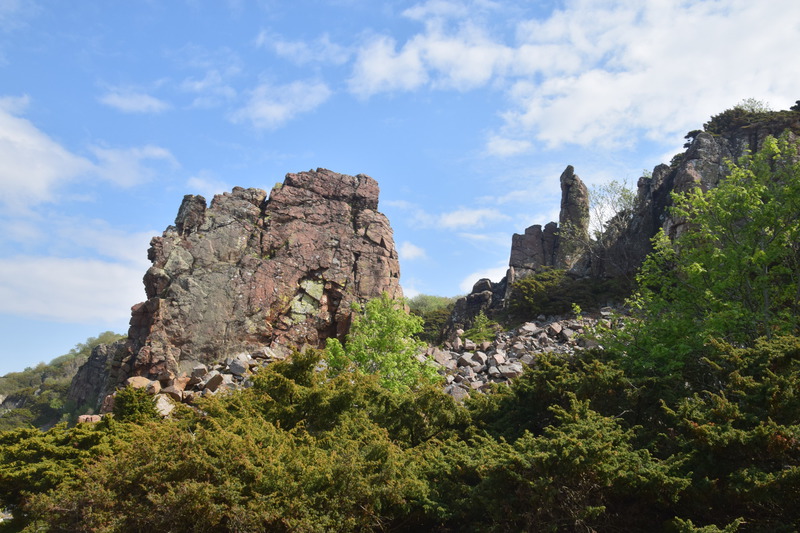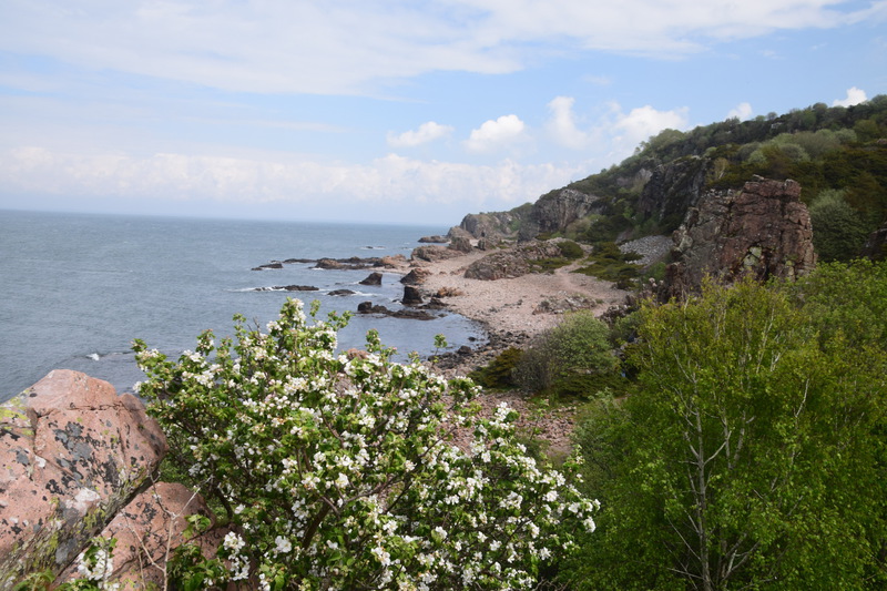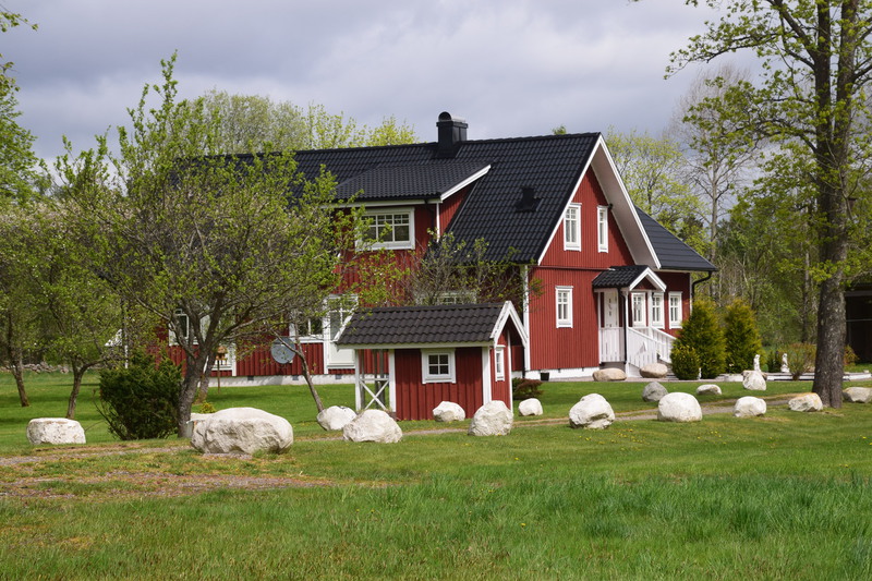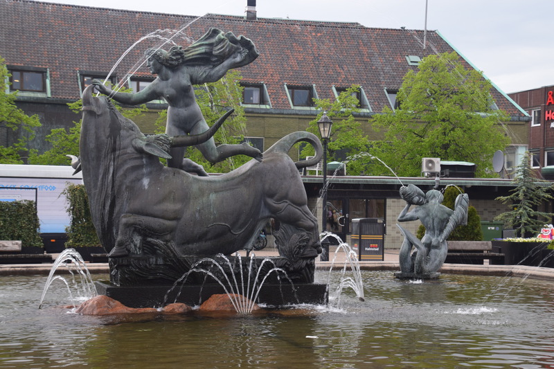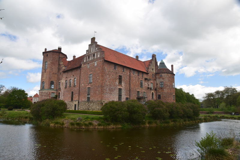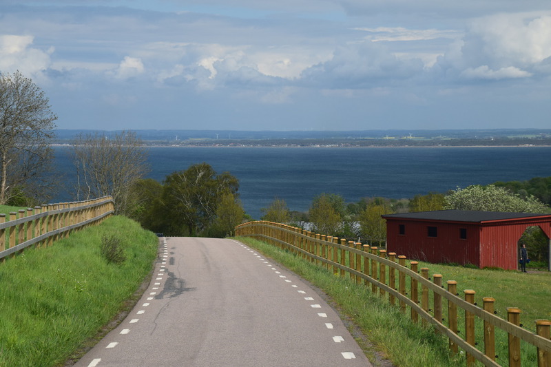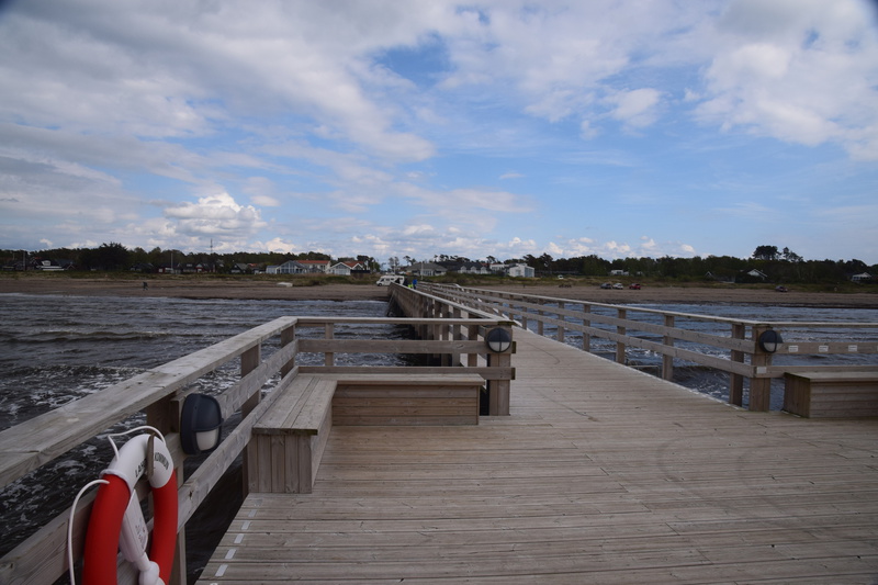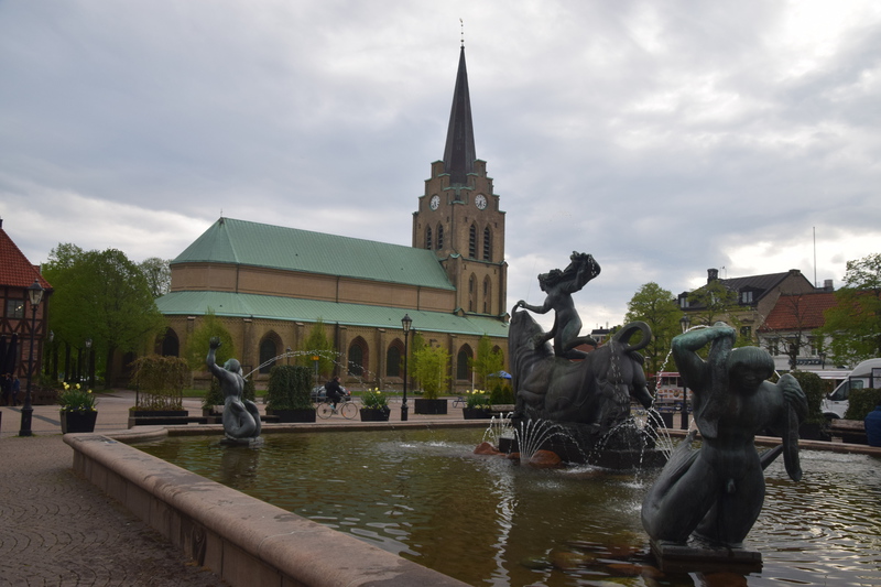 Wir hatten uns für heute Morgen mit dem Besitzer unseres Stellplatzes verabredet, leider haben wir uns verpasst! Er wollte uns sein Museum zeigen. So starten wir gegen 10 Uhr mit dem Ziel an der Küste die Nacht zu verbringen. Die ersten paar Kilometer geht es auf Asphalt, danach auf Schotter vorbei an kleinen Ansammlungen sehr schöner Häuser auf großen Anwesen. Wir fahren entlang des Rössjö (See) immer noch auf Schotter und durch dichten Wald, ab und zu erhaschen wir auch einen Blick auf den See. Wir wechseln auf eine normale Straße und kommen am Västersjö (See) entlang bis Hjärnarp hier unterqueren wir die Autobahn und folgen den Wegweisern nach Torekow wo wir am Hafen einen schönen Platz finden. Der Regen, der uns seit Hjärnarp begleitet hört auf und so machen wir einen Spaziergang entlang des Hafenbeckens mit einem kleinen Schifffahrtsmuseum und anschließend durch den Ort, der fast schon ausgestorben wirkt. Unser heutiges Highlight ist die Bjärehalvön-Halbinsel mit dem Hovs Hallar. Hier bricht das Land steil ab und es ragen rostrote Felstürme empor. Wir klettern durch die Felsen hinunter an den mit Steinen übersäten Strand und schauen beeindruckt an den Felswänden empor. Wäre es etwas wärmer könnte man hier herrlich baden. Für uns geht es weiter, denn als Schlafplatz eignet sich der Parkplatz nicht. Vielleicht können wir ja am Strand stehen ? Wir fahren an Skummeslövsstrand fahren ein paar Meter auf den Strand und stellen „Gretchen“ ab um zu Fuß auf eine kleine Seebrücke zu spazieren. Da an der Zufahrt zum Strand Verbotsschilder stehen möchten wir einen Strafzettel nicht riskieren und fahren weiter zum Städtchen Halmstad. Wir stellen uns direkt an den Fluss Nissan und machen uns auf, unsere erste schwedische Stadt zu erkunden. Der Bummel führt uns zum Marktplatz in dessen Mitte der Milles-Brunnen „Europa und der Stier“ steht. Unser Spaziergang wird unterbrochen von einer „Bierpause“ in einer Außengastronomie mitten in der Fußgängerzone (unser erstes Bier in Schweden, es ist doppelt so teuer wie zu Hause). Zum ersten Mal auf unserer Tour sind wir an einem Ort, wo mehr Menschen unterwegs sind – es ist eine angenehme Atmosphäre. Am Schloss vorbei geht es zurück zu „Gretchen“.