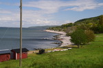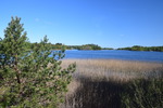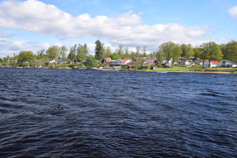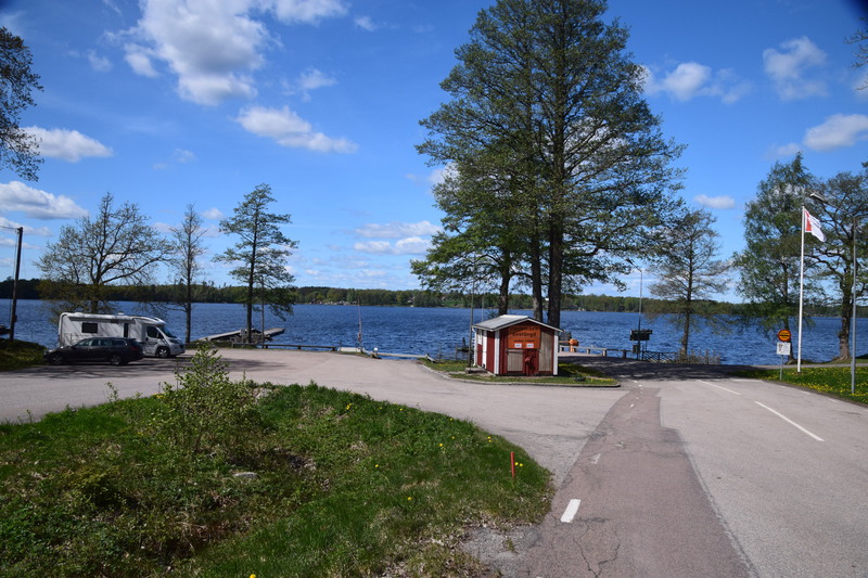 Heute ist der erste Tag in Schweden an dem die Sonne vom wolkenlosen Himmel scheint. Nach Frühstück und Spaziergang beobachten wir, wie drei Schiffe zu Wasser gelassen werden. Bei einem recht großen, hilft Mario das Boot von der Kaimauer fern zu halten. Der Kapitän hat ein paar kleine Anfangsschwierigkeiten. Nun machen wir uns auch wieder auf den Weg. Nach dem Örtchen Tannaker fahren wir über eine Brücke und befinden uns auf der Insel Bolmsö. Bis zum südlichen Ende der Insel sind es nur wenige Kilometer, die Straße endet direkt am Seeufer. Für Mario gibt es nun kein Halten mehr, er muss unbedingt im See baden. Das Bad wird sehr kurz: rein, nass, raus!!!!! Die Wassertemperatur liegt bei 12, die Lufttemperatur bei 14°. Nun geht es zum anderen Ende der Insel, wo es eine Fähre gibt. Wir parken bei der Kirche, die leider geschlossen ist, bummeln zum Ufer und zu einer Sehenswürdigkeit (große schrägstehende Felsen, die angeblich Grabstätten aus der Wikkingerzeit sind. Wir überlegen, ob wir die Fähre mittels eines an der Abfahrtsschranke befindlichen Telefons, rufen sollen (sie fährt zur Zeit nicht regelmäßig), entscheiden uns aber dagegen, fahren wieder über die Brücke und am See entlang. Kurz nach Dannäs machen wir noch einen Ausflug über eine Schotterpiste zu einer kleinen Landspitze die in den See hineinragt. In Toftnäs spielen wir mit dem Gedanken zu bleiben – 100 % gefällt es uns aber nicht und so geht es wieder zurück zur Hauptstraße. Kurz nah Liljenäs finden wir einen Abzweig zu einem Badeplatz, wir fahren hin und haben hier unseren Übernachtungsplatz gefunden. Wir stehen einige Meter vom See entfernt, nur wenige Schritte hinter einer Liegewiese. Zum ersten Mal holen wir unsere Stühle heraus und wandern zum See. Bei herrlichem Sonnenschein und inzwischen angenehmen Temperaturen genießen wir den Nachmittag. Als gegen 16.30 Uhr die Sonne wieder hinter den Wolke verschwindet, packen wir unsere Stühle zusammen und gehen zurück zu „Gretchen“, das inzwischen durch ein weiteres Womo Gesellschaft bekommen hat. Es sieht so aus, als wären wir nicht die Einzigen, die die Nacht hier verbringen.