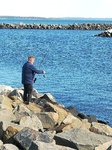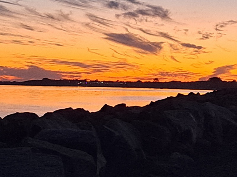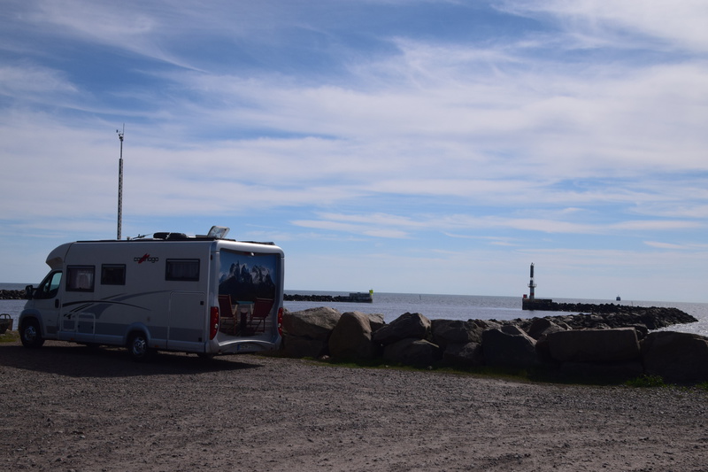 Heute Morgen machen wir als erstes eine Spaziergang um herauszufinden, wo dieser schöne Platz direkt am Meer ist. Herrlich ist es hier und so gehen wir zurück, holen „Gretchen“ und fahren das kurze Stück. Jetzt stehen wir, direkt vor und neben uns Wasser. Endlich ist für Mario die Zeit gekommen seine Angel auszupacken. So ausgerüstet wandert er, mit unserem deutschen Womo-Nachbarn, auf die Mole der Hafeneinfahrt, bis er einen vermeintlich geeigneten Angelplatz findet. Ca. 1 Stunde später kommen beide zurück, Fische haben sie keine mitgebracht (zum Abendessen hatte ich, in weiser Voraussicht, bereits etwas anderes geplant). Trotz des Sonnenscheins ist es, durch den Wind, nicht wirklich warm, wir genießen es trotzdem in der Sonne zu sitzen und den Tag an uns vorbeiziehen zu lassen. Der Wind lässt erst am frühen Abend nach und nachdem alle, ausnahmslos erfolglos, wieder abgezogen sind, versucht Mario sein Glück nochmals – man sieht vereinzelt auch Fische aus dem Wasser springen, aber diese sind anscheinend zu schlau um sich fangen zu lassen. Um 21 Uhr verziehen wir uns nach drinnen und bearbeiten unsere Website. Nach 22 Uhr gehen wir noch einmal raus um den von der Sonne angestrahlten Himmel zu bewundern.