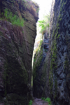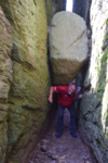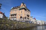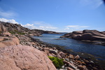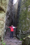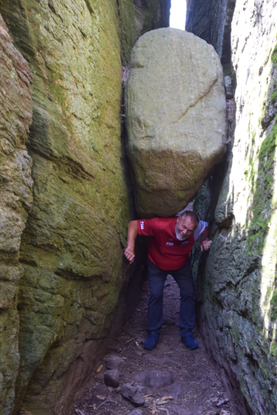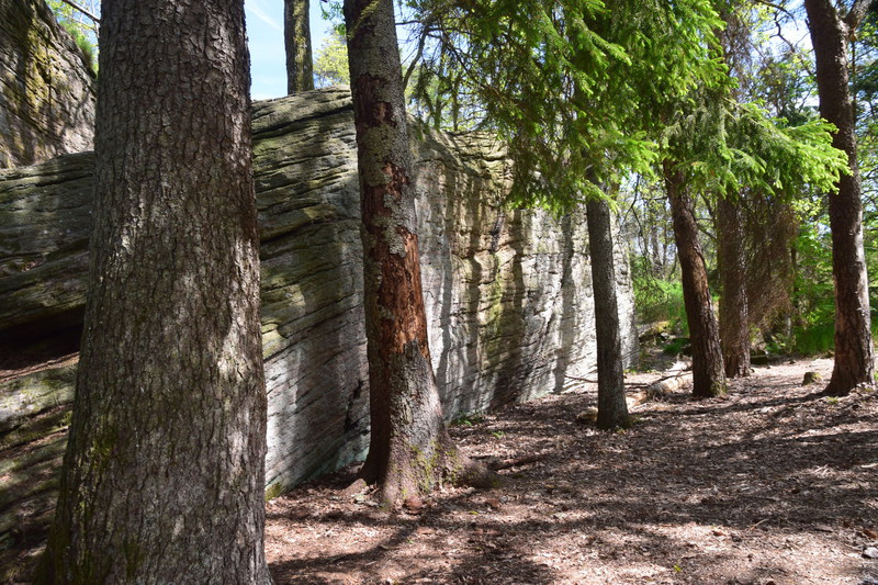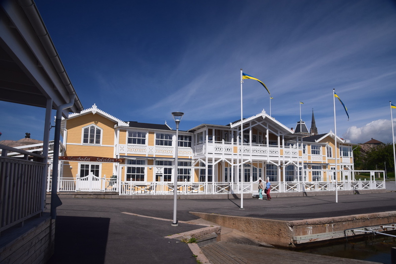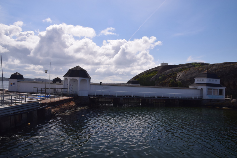 Wir verlassen die Festung und gehen zum Kallbadhuset. Dieses steht auf Pfählen im Hafenbecken und ist im Jugendstil erbaut. Im Moment ist das Gebäude teilweise eingerüstet. Wir bummeln zurück und setzen unseren Weg in Richtung Göteborg fort. Einen Abstecher machen wir noch: Wir fahren zur Felskluft Borras Skara, parken im Wald und machen uns zu Fuß auf den Weg. Es geht einige Minuten steil hinauf zu der 10m tiefen Klamm mit dem dekorativen „Steinstöpsel“.