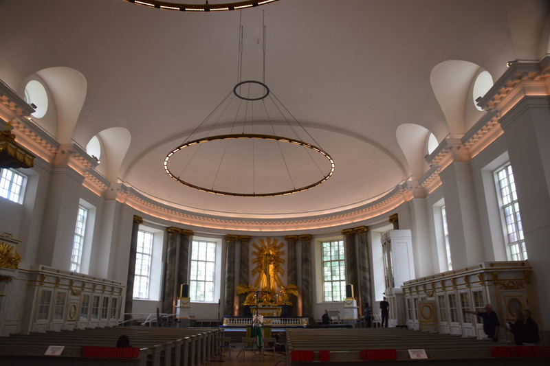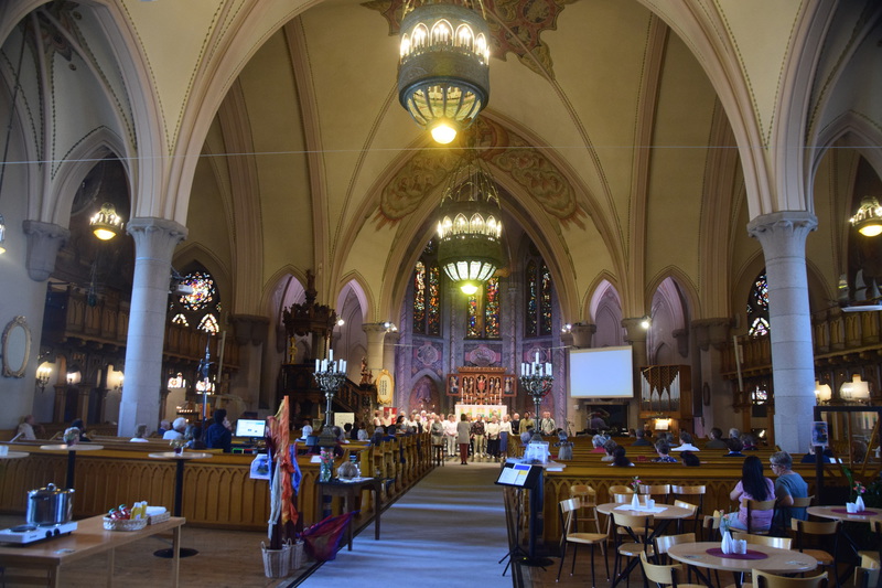 Der Radweg ist gut ausgeschildert und auch gut ausgebaut. Wir fahren am Vergnügungspark Liseberg vorbei und machen wenig später Halt am Poseidon-Brunnen von Carl Milles, der auf dem Götaplasten steht. Bevor wir zum Rosenlundskanalen kommen, sehen wir das schneeweiße klassizistische „Große Theater“ der Stadt. Direkt nach der Brücke über den Kanal stehen wir vor einer Tourist-Info. Ausgerüstet mit Stadtplan machen wir uns auf den Weg. Die Fahrräder stellen wir, gut gesichert, vor der Markthalle (Stora Saluhall) ab. Nach dem Bummel durch die Markthalle führt uns unser Weg zum Kanal. Hier entscheiden wir uns spontan zu einer Tour mit dem Paddan-Boot, das ganze dauert eine ¾ Stunde und führt an vielen wichtigen Gebäuden der Stadt vorbei zum Hafen, entlang des Hafenbeckens und wieder zum Ausgangspunkt. Jetzt ist es Zeit, die Innenstadt zu Fuß zu erkunden. Leider ist die Fischhalle “Feskekörka“ wegen Renovierung geschlossen. Die 1874 erbaute Halle trägt den Beinamen „Kirche“ wegen ihrer Architektur. Wir kommen zur „Kristine kyrka“ die auch als „Deutsche Kirche“ bezeichnet wird, das sie die Kirche der deutschen Gemeinde war. 1648 wurde sie, während der Regentschaft von Königin Christina zum ersten Mal eingeweiht – nach mehreren Bränden erhielt sie 1750 ihr heutiges Aussehen. An die Kirche schließt sich der Gustav Adolfs Torg, ein wunderbarer Platz, in dessen Mitte die 1854 geschaffene Statue des Stadtgründers Gustav II Adolf, steht. Jetzt sind wir Richtung Hafen unterwegs, kommen zum Opernhaus, zum 1907 gebauten Viermastbark Viking und von dort zu einem der größten Einkaufszentren Skandinaviens (einmal quer durch – reicht)! Nun wird es Zeit für eine Pause, wir sitzen im Außenbereich eines Restaurants und essen „Dagens rätt“ (günstiges Mittagessen), sehr lecker. So gestärkt geht machen wir uns auf den Weg zur letzten Sehenswürdigkeit des heutigen Tages, den Dom, der doch eher bescheidene Ausmaße hat und auch das Innere ist nicht so überladen, wie wir es von vielen anderen Kathedralen kennen. Nun geht es, nach einem Einkauf in der Markthalle, mit unseren Rädern wieder zurück zu „Gretchen“.