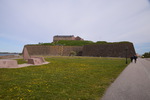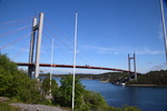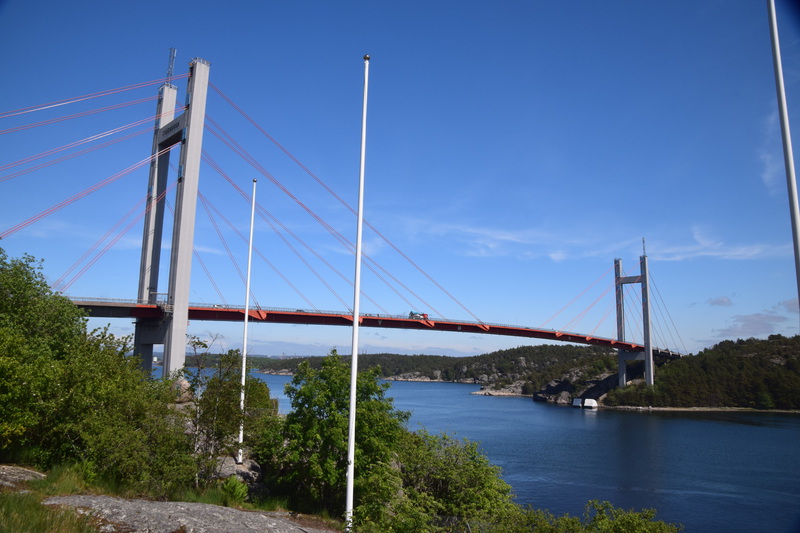Die Nacht war regnerisch, aber heute Morgen ist es wieder trocken, aber bewölkt und es hat wieder nur 14°. Nach dem Frühstück verlassen wir Göteborg in Richtung der Schären-Inseln. Doch schon nach einer halben Stunde Fahrzeit haben wir die „Bohus-Fästning“, die am Zusammenfluss von Nordrealv und Göta älv liegt, erreicht. Sie ist eine der gewaltigsten Festungen Skandinaviens und wurde zu Beginn des 14. Jahrhunderts erbaut. Der massive Hauptturm „Papis Hut“ geht auf die Zeit um 1450 zurück. Wir durchstreifen die Festung, schauen in jeden schmalen Gang und gehen über schmale, im Dunklen liegende, Treppen hinauf und wieder hinunter. Die ganze Festung ist beeindruckend und wird auch gut vermarktet, es gibt für Kinder Spielbereiche und für Erwachsene zwei immer wieder wechselnde Ausstellungen. Nun nehmen wir wieder Fahrt auf und erreichen bei Stenungsund die „Tjörnbron“ eine gigantische Brückenkonstruktion, über die wir auf die Schäreninsel Tjörn kommen. Die Landschaft hat sich sehr gewandelt, es wird der Blick auf Schärenrücken und -buckel freigegeben. Wir hoffen in Rönnäng einen Schlafplatz für uns zu finden, der einzige Stellplatz dort gefällt uns aber überhaupt nicht (es ist ja auch noch früh) und so fahren wir in den schönen Hafen von Skärhamn. Hier würde es uns gefallen, aber leider dürfen wir hier nur für ein paar Stunden parken und so bummeln wir die Hafenanlage entlang an kleinen „Butiken“, Bars und Restaurants (allesamt sind geschlossen). Wir fahren zurück aufs Festland, wo wir kurz hinter Stenungsund einen ausgewiesenen Badeplatz anfahren. Nun stehen wir auf einem Waldparkplatz, leider ohne Meerblick, aber sehr schön, und beschließen den Tag. Ein kurzer Spaziergang zur Badebucht mit Blick auf kleine Schäreninseln wird als Tagesabschluss gemacht.