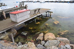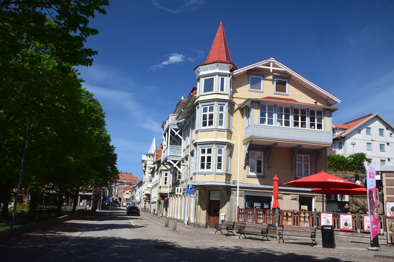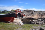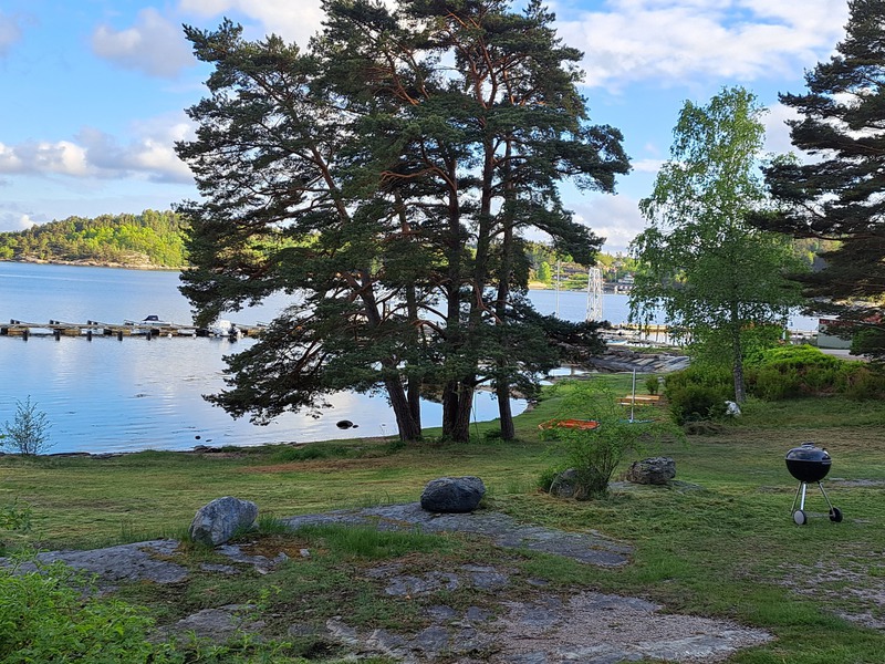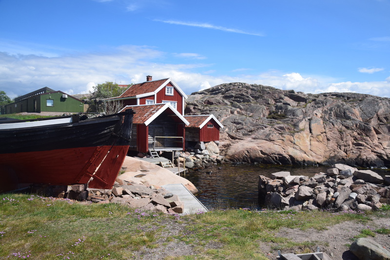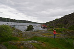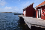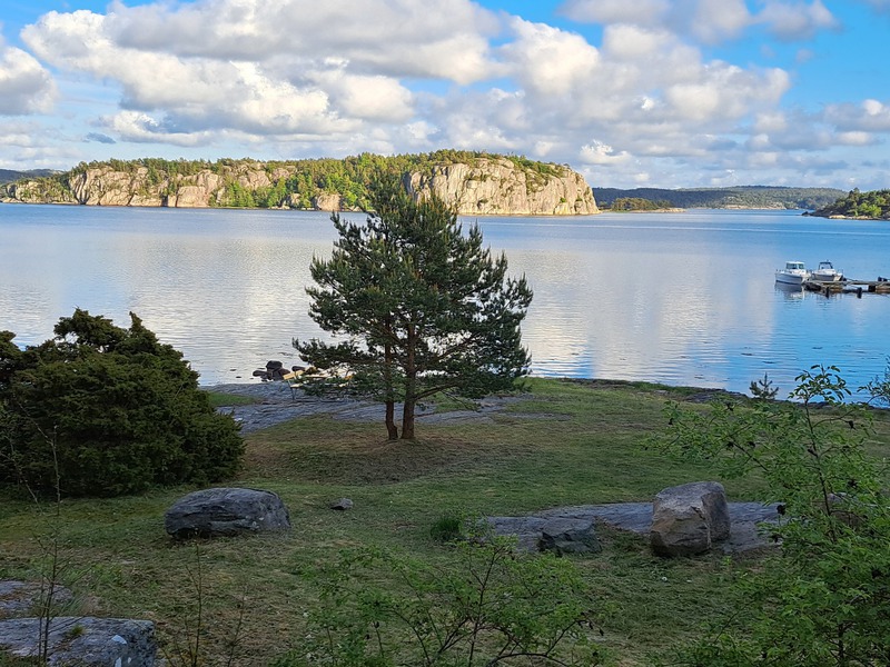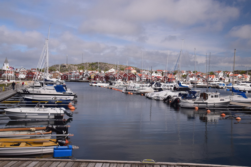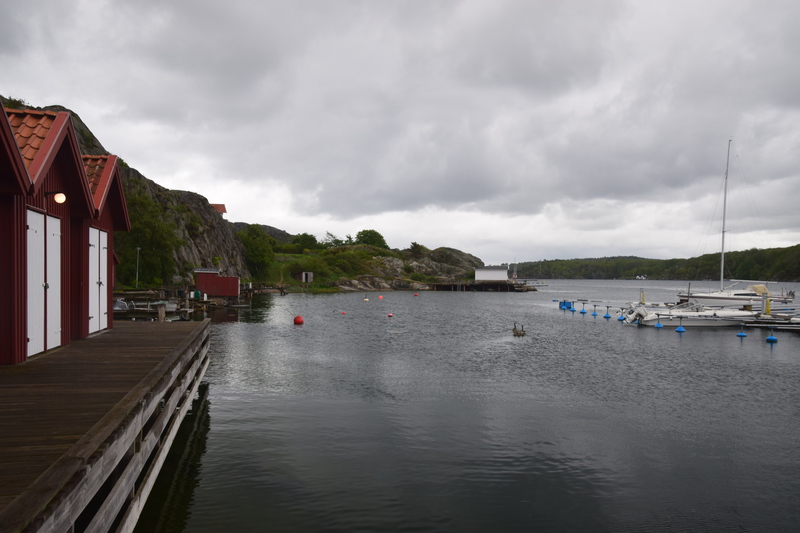 Jetzt hat uns das schlechte Wetter eingeholt – in der Nacht hat es angefangen zu regnen. Wir nehmen die Fähre, man staune – sie ist kostenlos!, um auf die Insel Orust zu gelangen. Orust ist die drittgrößte Insel Schwedens. In Nösund machen wir Halt und bummeln bei leichtem Nieselregen auf einem Bohlenweg an der Küste entlang, als wir den Aussichtspunkt erreichen, kehren wir um und weiter geht’s mit „Gretchen“. In Hälleviksstrand möchten wir die dortige, einmalige rote Holzkirche besichtigen. Sie ist leider wegen Renovierungsarbeiten geschlossen und so geht es weiter nach Ellös. Wir machen einen Spaziergang durch den Ort, der aber leider überhaupt kein Flair hat und so sind wir schon bald wieder auf der Straße in Richtung Henan, wo wenige Kilometer später die Brücke auf die Insel Skaftö führt. Unser Ziel auf dieser Insel ist der Fischerort „Fiskebäcksil“. Dieses Örtchen hat sich zum Freizeitwohnsitz gut situierter Schweden entwickelt, hat aber durch die schönen, zum Teil mit Schnitzereien verzierten Häuser, sehr viel Charme. Von hier wollen wir eigentlich den Gullmarn-Fjord (Schwedens einziger echter Fjord d.h. mit der typischen Schwelle vor der Mündung) nach Lysekil überqueren. Leider geht von hier aus aber nur eine Personenfähre ☹. Das Erreichen von Lysekil haben wir für heute abgeschrieben, wir suchen uns nun in der Umgebung einen Platz. Diesen finden wir direkt am Wasser von Rörbäck. Kaum sind wir angekommen, haben die Gegend erkundet, lässt sich die Sonne für eine kurze Zeit blicken – ein versöhnlicher Abschluss des Tages.
