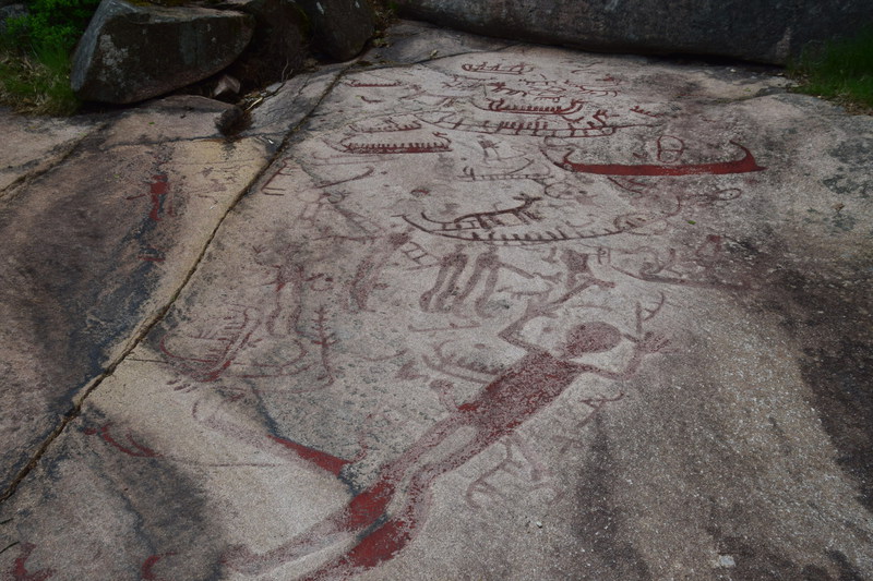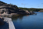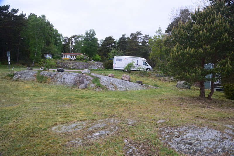 Die Sonne scheint – herrlich. Nach dem Frühstück setzen wir uns mit einer Tasse Kaffee direkt ans Wasser. Anschließend fahren wir wenige Kilometer bis zur Fähre, die uns über den Gullmarnfjord und somit nach Lysekil bringt. Am Ortseingang entdecken wir, weil dort einige Womos stehen, eine Möglichkeit zum Entleeren und Wasser auffüllen (kostenlos). Weiter geht es in den Ort, wo wir in einer Seitenstraße einen kostenlosen Parkplatz ohne jede Beschränkung finden. Jetzt machen wir uns zu Fuß auf Erkundungstour. Natürlich geht es als erstes ans Wasser. Wir beobachten Taucher und werfen einen Blick zum Kaltbadehaus. Von hier aus erklimmen wir den kleinen Hügel, der uns direkt zur Kirche führt. Wir werfen einen Blick hinein, es ist gerade Gottesdienst und ein Chor stellt sich zum Gesang auf. Im hinteren Teil der Kirche, wo wir stehen sind Tische aufgestellt und es gibt (obwohl der Gottesdienst im Gange ist) die Möglichkeit einen Kaffee zu trinken – unvorstellbar in einer deutschen katholischen Kirche. Weiter geht es vorbei an einem kleinen Park und die Fußgängerzone zur Strandpromenade. Nun interessiert uns aber auch die Hauptattraktion von Lysekil, das Havets Hus, ein Meerwasseraquarium. Vorbei am Schwimmbad mit kleinem Sandstrand führt unser Weg zum Naturreservat Stangehuvud. Hier wandern wir durch die Felsformation, genießen den Blick auf Wasser, Segel- und Motorboote und fühlen uns einfach nur wohl. Inzwischen ist es früher Nachmittag und wir verlassen das wirklich sehr schöne Städtchen wieder. Ca. 15 km weiter stoßen wir auf die Felsbilder, die wohl aus der Bronzezeit stammen. Wir kommen auf die andere Seite der Halbinsel und hier zum Örtchen Hovenäset, wo wir unseren Übernachtungsplatz finden. Wir stehen mit unserem „Gretchen“ nur durch einen Holzsteg mit Bootsanlegestellen vom Wasser getrennt. „Gretchen“ wird geparkt und ausgerichtet und wir machen einen Spaziergang über den Bohlenweg mit vielen Möglichkeiten um über eine Leiter ins Wasser zu kommen, nach wenigen Metern erreichen wir sogar einen Badeplatz. Fast sofort kehren wir um, Mario möchte unbedingt baden – was er auch tut. Anschließend nehmen wir unsere Stühle, setzen uns ans Wasser und genießen die Sonne. Heute unternimmt Mario wieder einen „Angelversuch“ – beim Versuch bleibt es dann auch – zum Abendessen gibt es dann halt nur Salat ?.