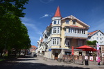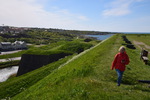 Heute geht es die Küste entlang bis Varberg. Nachdem „Gretchen“ geparkt ist machen wir uns zu Fuß zur Festung auf. Diese stammt aus dem 13. Jahrhundert und thront mit ihren „rostroten Reihenhäusern“ über dem Hafengelände. In der Festung befindet sich ein Museum, welches wir ebenso besichtigen. Der Sage nach ist hier eine gepfählte Moorleiche sowie die Überreste eines vermutlich Ermordeten zu sehen. Ein wichtiges Teil des Museums ist die „Knopfkugel“ durch die Karl XII. von Schweden zu Tode kam. Der Sage nach wurde ihm der kugelförmige Knopf von seinem königlichen Gewand gestohlen - denn nur durch diesen Knopf konnte er getötet werden.