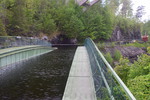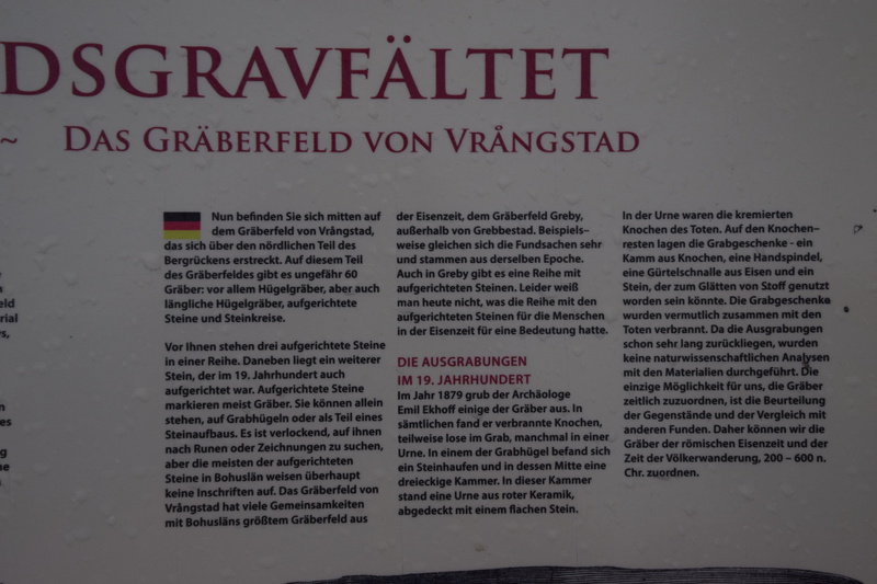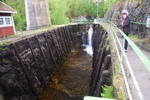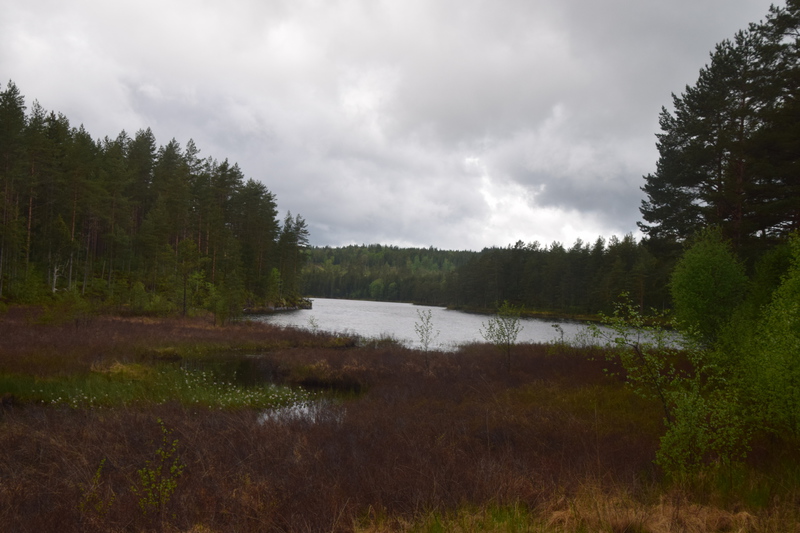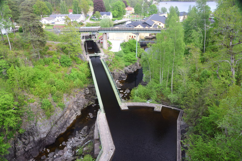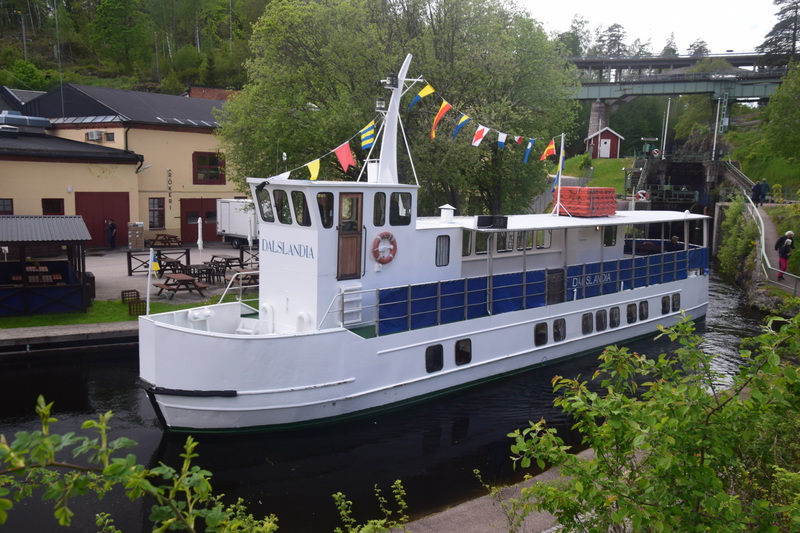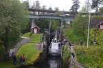 Gestern haben wir die Küste endgültig verlassen, jetzt sind wir auf dem Weg zu den großen Seen. Wir kommen an einen Parkplatz mit Infotafeln, diese weisen auf die Parsetjärns-Schanze aus dem zweiten Weltkrieg hin. Man kann hier zwischen Schützen- und Splittergräbern, PAK-Stellungen und Maschinengewehrständen herumwandeln (Diese Anlage wurde nie gebraucht). Wir fahren von der Hauptstraße ab und gelangen wieder einmal auf eine kleine Schotterstraße und durch ein großes Waldgebiet, dessen Boden über und über mit Heidelbeerbüschen voll ist. Daran schließt sich ein Hochmoorgebiet an. Das ganze erleben wir bei mehr oder weniger Regen. Einen Tank- und Einkaufsstopp legen wir in Ed ein. Über Mellerud fahren wir nach Järn und von dort nach Jakobsbyn, wo wir uns einen Übernachtungsplatz anschauen. Dieser ist schön, liegt mitten im nichts und zum See sind es gute 3 km. Wir sind früh dran und so beschließen wir weiter zu fahren. Mit dem dritten Platz den wir anfahren haben wir gefunden was wir gesucht haben – einen Stellplatz mit Blick auf den See. Nach einer Kaffeepause nehmen wir die Räder und fahren die wenigen Kilometer zum Dalslandskanal bei Haverud. Als wir ankommen fährt gerade ein Schiff von einer Schleuse in die nächste. Der Dalslandskanal überquert die tiefe Schlucht des Hafreströmmen in einem 32,5 m langen Aquädukt, konstruiert aus Eisenplatten, die mit 33000 Nieten verbunden sind, von denen noch keine ausgetauscht werden musste. 50 m oberhalb des Aquädukts quert eine moderne Straßenbrücke die Schlucht, parallel verläuft die Eisenbahnbrücke. Der Dalslandskanal wurde 1868 eingeweiht.