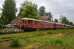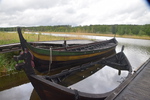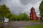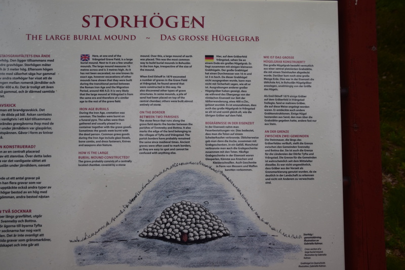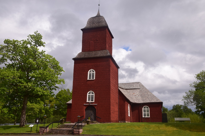 Der Wetterbericht hatte recht, als wir starten regnet es in Strömen. Als erstes fahren wir entlang des Dalslandskanals und kommen zum Gutshof Baldersnäs, wo wir während einer Regenpause einen Bummel durch den Park machen. Mit dem einsetzenden Regen starten wir zur Kirche in Laxarby (wie fast alle Kirchen ist auch diese geschlossen). Von hier aus geht es für viele Kilometer über eine Schotterstraße, durch ein großes Waldgebiet. Außer ein paar einsame Häuser, Rehe und zwei Kraniche gibt es nichts nennenswertes. Wir kommen nach Svanskog – hier ist richtig was geboten. Als erstes kommen wir zu einem Parkplatz auf dem „4 alte Amischlitten“, stehen. Kurz danach erreichen wir den nächsten Platz, von dem aus wir zu den Museumszügen und Fahrraddraisinen gelangen. Anschließend kommen wir zu eine alten, falunroten Holzkirche mit gepflegter Wiesenlandschaft und Blick auf den See. Die schwarze Wolkenwand, die über den See auf uns zu kommt, kündet fast schon den Weltuntergang an (zum Glück kommt es jedoch nur zu einem Wolkenbruch – die Welt bleibt erhalten). Nun geht es auf in Richtung Borgvik. Bevor wir jedoch diesen Ort erreichen müssen wir „Gretchen“ auf dem Parkplatz des „Vikingercenters“ abstellen und über den kurzen Trollstig zum Wasser laufen. Hier liegt der Nachbau eines 17-m-Wikingerschiffes. In Brogvik angekommen gehen wir zu den Überresten der einst größten Eisenhütte Dalslands. Allein der Hochofen für sich ist schon beeindruckend. Nun ist es für heute genug und wir suchen uns einen geeigneten Übernachtungsplatz, den wir nur durch eine Wiese getrennt am Langsjö (See) finden. Zwischen 19 und 20 Uhr haben wir vollen Sonnenschein!!!