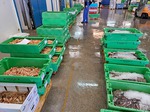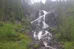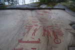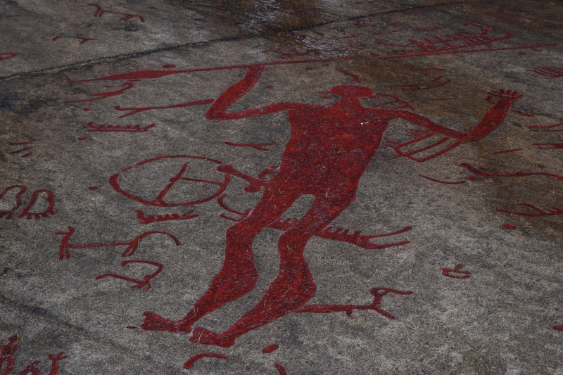 Um 7.30 Uhr genehmigen wir uns eine Tasse Kaffee, danach machen wir uns auf den Weg zur Fischhalle / Fischauktion, die um 8 Uhr beginnt. Wir sind pünktlich, betreten die große Halle, wo Kistenweise Krabben, Garnelen, Langusten sowie Lachs, Makrelen und viele andere Fische aufgereiht sind. Nun erwarten wir die Auktion, es sind jedoch nur eine Handvoll Männer in der Halle. Eine Auktion, wie wir sie erwartet bzw. erhofft haben (laute Gebote und Handzeichen) gibt es nicht. Die Männer gehen die Kisten entlang und tippen auf ihren Handys rum – Auktion übers Internet, modern aber nicht lohnenswert. Lohnenswert war aber der Blick in all die Kisten. Mario frägt einen der Herren ob wir einen Fisch kaufen können, dies ist aber nur auf der anderen Seite der Halle im Fischladen möglich. Also gehen wir um das Gebäude rum und kaufen unseren Fisch ganz regulär im Geschäft. Mit Makrele und Lachs ausgerüstet gehen wir zurück. Jetzt gibt es Frühstück und dann geht die Reise weiter. Wie im Wetterbericht angekündigt beginnt es zu regnen. Wir kommen nach Hunnebostrand, das wir linksliegen lassen. Einen ersten Stopp machen wir bei den Grabhügeln von Vrängstad, den nächsten bei der Svenneby Kirche, die leider geschlossen war. Als wir Hamburgsund erreichen, regnet es so stark, dass wir nur kurz am Pipers huset anhalten (eine kleine Eisfabrik mit Eiscafé (auch dies leider geschlossen). Den ersten Regenspaziergang unternehmen wir in Fjällbacka. Die kleinen roten Häuschen aus dem 18. Jh. und die fast 80 m hohe, senkrechte Granitwand des Vettebergs sind die Kennzeichen dieser, sehr schönen Siedlung. An der Küste entlang geht es bis Grebbestad und von dort zu den Felszeichnung und Ritzungen von Vitlycke, Aspeberger, Fossum und Litsleby. Die Fundstellen wurden 1994 in die UNESCO-Liste des Weltkulturerbes aufgenommen. Die Zeichnung stammen aus dem Ende der Eiszeit. Über Tanumshede fahren wir entlang eines schmalen Sees nach Vassbotten. Kurz danach halten wir am Parkplatz des 46 m hohen Elchwasserfalls, der auch die Grenze zwischen Schweden und Norwegen markiert. Hier bleiben wir!