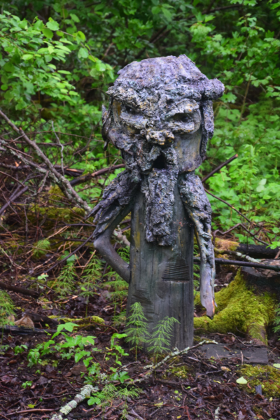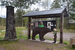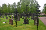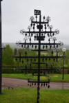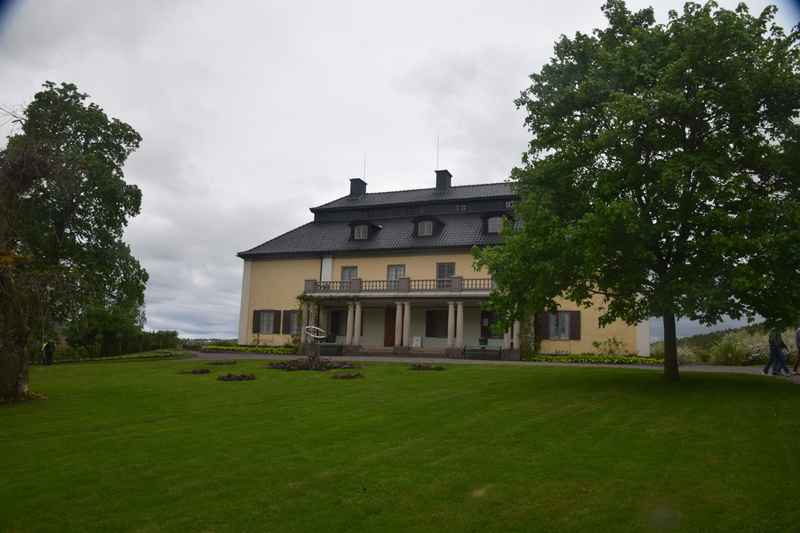 Es hat gerade mal 8° und Regen. Positiv: Die Temperaturen steigen auf immerhin 12°; Negativ: Der Regen bleibt uns bis auf kurze Augenblicke erhalten. Wir fahren bis Marbacka, hier steht das Geburtshaus von Selma Lagerlöf, die eine berühmte Schriftstellerin und Nobelpreisträgerin war. Sie ist auch Autorin von „Die wunderbare Reise des kleinen Nils Holgersson mit den Wildgänsen“. Leider sind die Räume, die wir besichtigen möchten geschlossen (im Mai nur samstags geöffnet. Also machen wir nur einen Bummel durch die Parkanlage, wo sich ein Pfau von der besten Seite zeigt. Den nächsten Stopp machen wir in Munkfors, wo wir für das durchlaufen der Fußgängerzone nur 5 Minuten benötigen. In Ekshärad fahren wir zum Friedhof. Hier stehen über dreihundert schmiedeeiserne Lebensbäume, deren Blätter im Wind schwingen. Mario geht, um ein paar Fotos zu machen, bei strömendem Regen an einigen Lebensbäumen entlang.