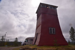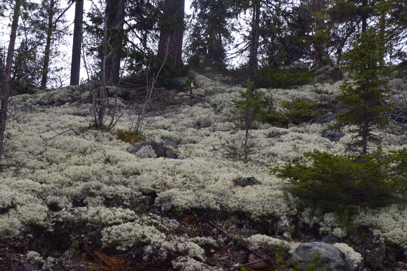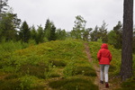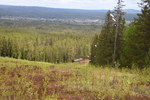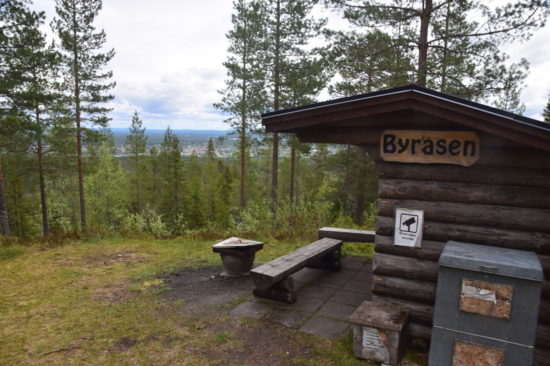 Juhuuuuu, es regnet nicht mehr! Bevor wir den Ort Malung erreichen machen wir einen Abstecher auf den 500-m-Hügel namens Byrasen, der einmal ein Skihang war. Wir stehen an der Bergstation. Zu sehen sind die Kabel der Liftanlage in den Bäumen und daneben eine Flutlichtanlage. Lifthäuschen gibt es nicht mehr. Seit Tagen machen wir hier den ersten längeren Spaziergang.