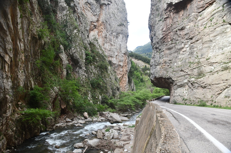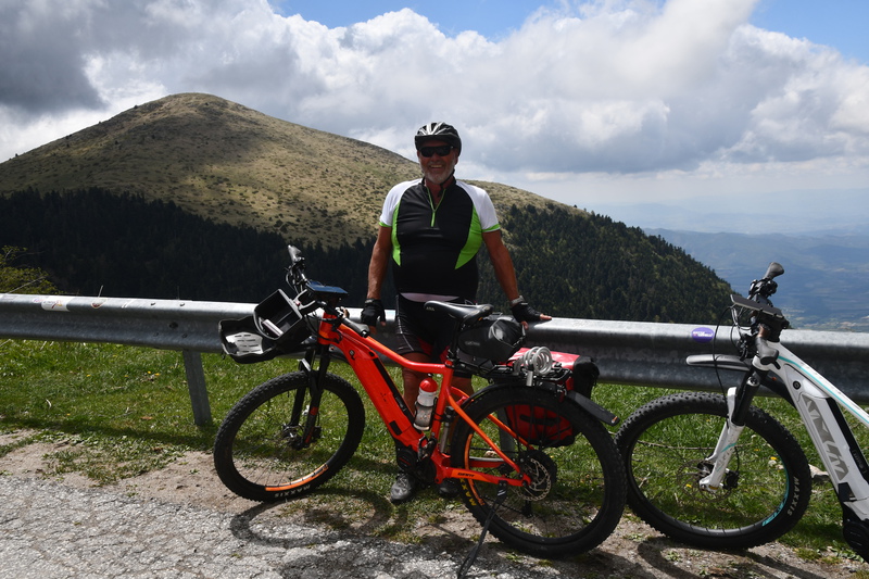In der Nacht wurde es etwas unruhig, neben uns parken 2 Autos, junge Leute, sie schlagen ein Zelt auf und legen ein dicke Luftmatratze daneben. Mario wirft einen Blick aus dem Fenster und beobachtet, wie sie betrunken durch die Gegend torkeln – sehr spät kehrt Ruhe ein. Jetzt wollen wir aber Richtung Olymp! Wir bleiben bis Eleftherohori(!) auf der Hauptstraße und biegen wenige Kilometer später auf eine kleinere Straße nach Olimibias (hört sich doch gut an) ab. Kurze Zeit später finden wir zwischen Bäumen einen guten Platz um „Gretchen“ eine Ruhepause zu gönnen. Wir möchten wieder einmal ein paar Kalorien verbrennen und so packen wir unsere Fahrräder aus. Auf der Karte haben wir die Kennzeichnung eines Klosters entdeckt, nur 6,5 km, da wollen wir hin. Nach 3 km erreichen wir jedoch eine Kreuzung mit dem Wegzeichen „Olymp“ 13 km, also lassen wir das Kloster links liegen und fahren Richtung Olymp. Wir fahren in Kehren mit einer Steigung von 10 % ca. 2 Stunden ständig bergauf! Als uns in einer Kurve auf unserer Straßenseite Fahrer mit sehr hoher Geschwindigkeit auf Skateboards entgegenkommen (sie fahren nur wenige cm an uns vorbei) bekomme ich fast einen „Herzkasper“ - das war knapp! Wir erreichen das Ende der Straße in einer Höhe von 1.800 m (hier befindet sich nur noch ein Militärstützpunkt). Der Himmel hat sich zugezogen und so machen wir uns zur Rückfahrt bereit. Nach wenigen gefahrenen Kilometern treffen wir wieder auf die Skateboarder (sie sind begleitet von einem Auto mit montierter Kamera und lassen sich anscheinend von diesem nach oben fahren, um danach wieder in rasanter Abfahrt einige Kurven zu fahren) – gefährlicher und verantwortungsloser geht es meiner Meinung nach nicht. Es war anstrengend aber schön, der Olymp hat sich leider hinter den Wolken versteckt, nach einer Tasse Kaffee nehmen wir wieder Fahrt mit „Gretchen“ auf. Die Nebenstraße, die wir fahren ist frei von jeglichem Verkehr und so können wir die Aussicht, die sich nach jeder Kurve (und davon gibt es sehr viele) verändert, genießen. Am Nachmittag erreichen wir bei Leptokaria die Küste und suchen uns einen Platz am Meer. Nun können wir auch einen Blick auf den sonnenbeschienen Olymp werfen. Nicht weit von uns befindet sich ein Strandlokal, in welchem laute Musik läuft – dies stört uns erst als wir schlafen wollen. Mario ist genervt, packt zusammen um an einen anderen Platz zu fahren – leider ist aber keiner zu finden und so stellen wir uns ca. 150 m weiter entfernt wieder hin. Wir stehen keine ¼ Stunde als die Musik aufhört – die ganze Aktion war für die „Katz“.