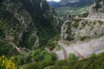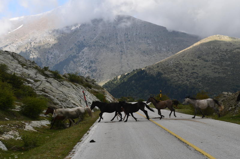 In der Nacht gab es ein Gewitter, der Wetterbericht hat sich also bewahrheitet. Es regnet in Strömen und so wie es aussieht, werden wir heute „faulenzen“ - machen wir doch nicht. Als der Regen kurz nachlässt ziehen wir die Badesachen an (Mario zieht Regenjacke über!) und gehen zum Bach um im heißen Wasser ein Bad zu nehmen. Nach einer weiteren Tasse Kaffee packen wir doch wieder ein und fahren los – es geht in die Berge. Mario hat eine weitere heiße Quelle entdeckt, was sich aber während der Fahrt als Irrtum herausstellt (falsch geschaut) und so fahren in die Bergwelt des Timfristos, den wir allerdings nicht zu Gesicht bekommen. Die Fahrt durch die Berge mit vielen Kurven ist den Abstecher aber wert. In Karpenisi (Bergdorf) angekommen, geht es quer durch den Ort, bis wir etwas unterhalb des Dorfes bei den Tennisplätzen einen geeigneten Platz zum Übernachten finden.