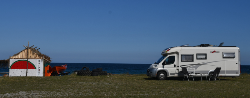 Kühlschrank – topp!!! Nach dem Frühstück nehmen wir ein morgendliches Bad im Meer, danach starten wir. Wir fahren zur Hafenstadt Volos, wo die Parkplatzsuche sehr zeitaufwändig ist. Wir fahren mindestens 3 mal hin und her, bevor wir dann letztendlich am Sportplatz einen für uns geeigneten Parkplatz finden. Zu Fuß machen wir uns auf, die Stadt zu erkunden. Sehenswürdigkeiten gibt es keine zu besichtigen, dafür gibt es eine umtriebige Fußgängerzone, die voller Leben ist, das wir bei einem Kaffee Fredo an uns vorbeiziehen lassen. Weiter geht es zur Hafenpromenade, auch hier befindet sich ein Restaurant neben dem anderen und in allen herrscht rege Betriebsamkeit. Auf dem Rückweg werden sämtlich Schiffe, ob Segelschiff oder Katamaran bewundert (Hobby von Mario). Nach einem Stopp in einem Angelgeschäft (Mario gibt die Hoffnung, er könnte einen Fisch fangen nicht auf) kehren wir zu „Gretchen“ zurück. Wir haben gelesen, dass die Pilionhalbinsel sehr schön sein soll. Also machen wir uns auf den Weg, diese zu erkunden. Es geht ab Volos steil bergan, die Straße ist schmal und großteils in einem schlechten Zustand. Vor uns fährt ein großer LKW – o-Ton Mario, wenn der kann, können wir auch!. Bei Hania erreichen wir die Passhöhe mit 1300 hm. Die Bergdörfer, durch die wir kommen, sind allesamt sehr schön, allein eine Möglichkeit für uns zu parken fehlt. Nach ca. 2 ½ Stunden (über Zagora) erreichen wir bei die Küste bei Horefto. Hier sieht man das ganze Ausmaß des Sturms im September 2023. Die Aufräumarbeiten wie auch die Arbeiten an den Straßen haben begonnen, bis jedoch alles wieder in Ordnung kommt, dauert es bestimmt noch einige Zeit. Wir gehen baden und überlegen danach was wir tun sollen. Die Wetterprognose ist sehr schlecht, für morgen werden ganze 16° und Regen vorhergesagt, die nächsten Tage sollen nicht besser sein. Wir entschließen uns deshalb, die Strecke wieder zurückzufahren. Nach weiteren 2 Stunden erreichen wir Volos wieder, biegen links Richtung Agria ab, wo wir die Nacht verbingen.
