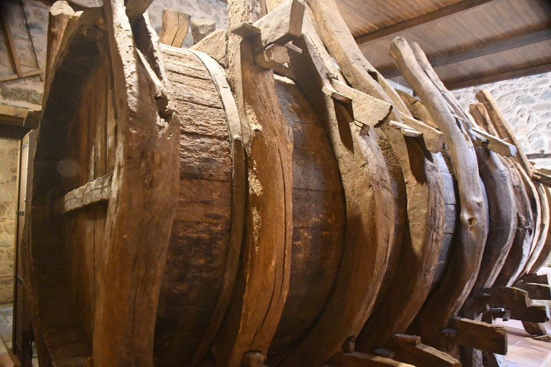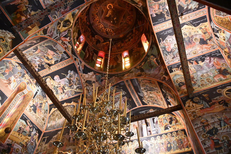 Beim durchwandern der Klosteranlage kommen wir zum alten Weinlager mit einem Fass aus dem 16. Jhr. mit einem Fassungsvermögen von 12.000 Litern. Des weiteren in die Kirche, mit ihren eindrucksvollen Bemalungen und Kronleuchter. Die weiteren Klöster haben wir nur von außen angeschaut. Nach 4 Stunden kommen wir zu „Gretchen“ zurück und verlassen die Gegend der Meteora-Klöster. In Kalambaka fahren wir eine Tankstelle an, Mario fragt nach Druckluft, zum Ausblasen unseres Kühlschranks (Gassystem). Unsere Fahrstrecke geht über Trikala, Kaditsa, Sofades, Farsala nach N. Anhiaios wo wir einen Standplatz direkt am Meer beziehen.