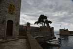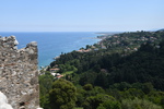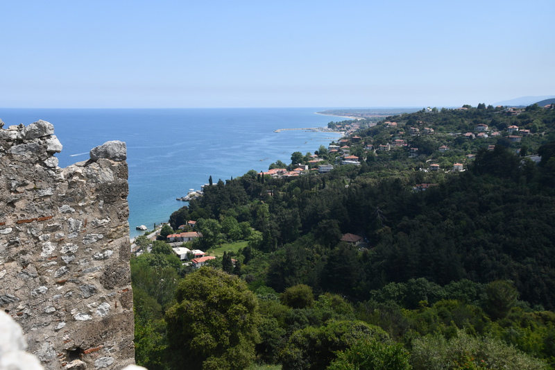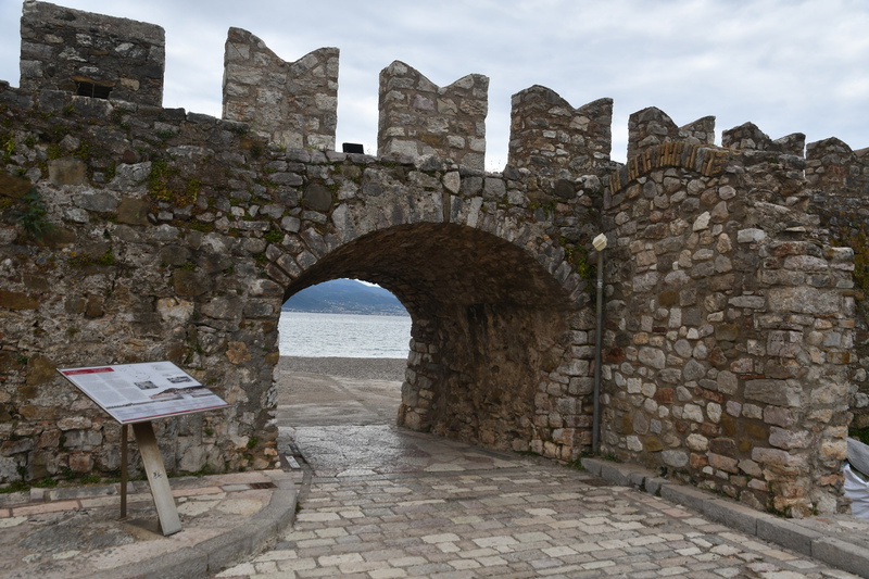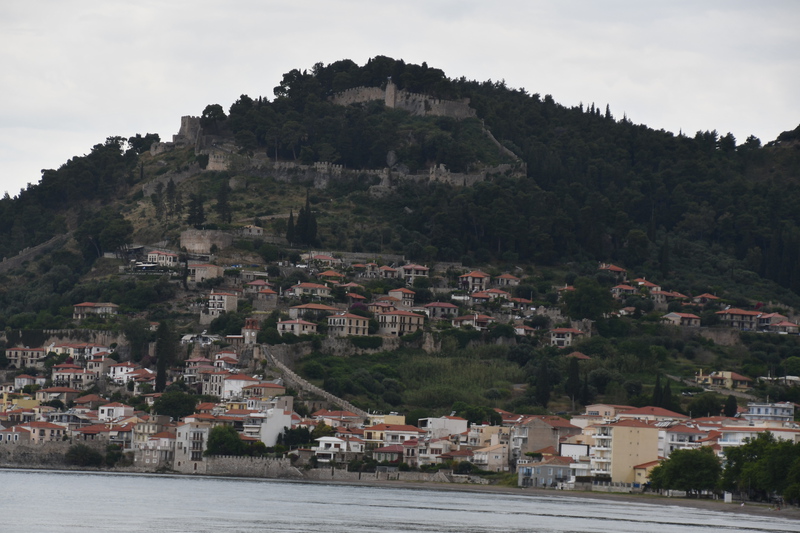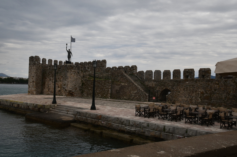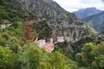 Wir gehen nicht wandern, der Himmel ist bedeckt, es hat kurzfristig aufgehört zu regnen, aber die Berge sind vor lauter Wolken/Nebel nicht zu sehen. So entschließen wir uns, wieder Fahrt aufzunehmen. Wir schaffen es tatsächlich, die Hauptstraße zu verfehlen und landen auf einer kleinen Nebenstraße (komisch – oder!!!). Die Straße ist eng, kurvig und in einem sehr schlechten Zustand. Die Ausblicke nach jeder Kurve sind jedoch grandios und entschädigen für das andauernde Scheppern der Gläser und Tassen in unserem Womo. Ein Höhepunkt auf der Strecke ist der Felsüberhang auf der Straße nach Prousós, der zweite ist der Blick auf das Kloster Panaghia Prousiotissa. Dieses entstand zu Beginn des 9. Jhr. und ist der Jungfrau Maria geweiht. Mit einer Geschwindigkeit von maximal 30 km/h nähern wir uns Thermo (eigentlich wollten wir auf der Hauptstrecke nach Agrinio), das oberhalb des Stausees gelegen ist. Der Stausee wird von mehreren Flüssen gespeist und ist eines der größten Stau- und Wasserkraftprojekte Griechenlands.Wir bleiben auf der Nebenstraße und rumpeln wieder über einen Pass, bevor wir dann bei Nafpaktos wieder die Küste erreichen. Jetzt stellt sich die Frage, ob wir hier bleiben oder weiter fahren. Wir stellen die Frage zurück und machen einen Bummel entlang der Festungsanlage durch die Stadt. Die Burg besichtigen wir nicht, gehen statt dessen durch die Fußgängerzone der Stadt zurück zu „Gretchen“. Der Platz auf dem wir stehen, gefällt uns nicht wirklich und so entscheiden wir uns, noch ein paar Kilometer die Küste entlang zu fahren. Im kleinen Dorf Marathias finden wir einen geeigneten Platz. Der Spaziergang endet bei einem Gläschen Wein in einer Bar. Wir wollen heute mal wieder Essen gehen – dies scheitert daran, dass alle (3) Restaurants, als wir zurück zu „Gretchen“ laufen, geschlossen haben. Wir sind etwas enttäuscht – die Küche bleibt kalt, wir essen Brot!