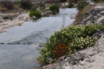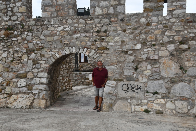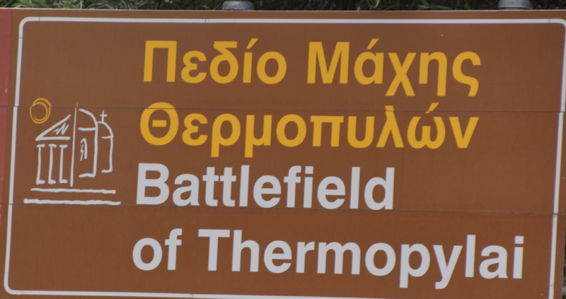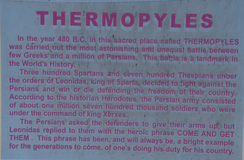 Wieder durchqueren wir Volos um auf die Autobahn zu kommen, auf der wir einige Kilometer in Richtung Lamia fahren. Vor Stilida verlassen wir die Autobahn wieder und es geht auf Landstraße weiter. Wir möchten in der Nähe von Karpenisi in die Berge. Die Wetterprognose ist jedoch für den morgigen Tag so schlecht, dass diese Fahrt heute und morgen keinen Sinn macht und so steuern wir Thermopyles mit seiner heißen Quelle und dem heißen Fluss an. Am Wasserfall und im Fluss befinden sich überall Badegumpen in denen man bei ca. 38° baden kann. Bevor wir jedoch das warme Wasser genießen besichtigen wir noch das Leonidas-Denkmal bei den Thermopylen. Am 11. August 480 v. Chr. fand hier die große Schlacht von Xerxes I., der die tapferen Spartaner unter Führung ihres Königs Leonidas bis auf den letzten Mann niedermetzelte, statt.