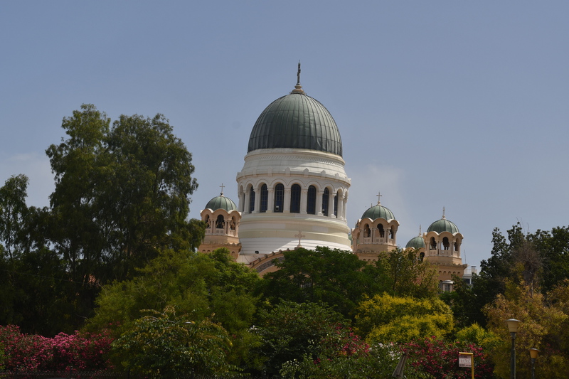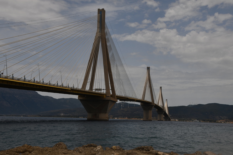 Auf geht es nach Patra. Wir beginnen den Bummel durch Patra mit dem Besuch der Agios-Andreas-Kathedrale, sie zählt zu den größten griechisch-orthodoxen Kirchen weltweit. Durch die Fußgängerzone geht es weiter zum Römischen Odeon, das leider zur Zeit geschlossen ist. Nun verlassen wir Peloponnes mit der Fähre. Die Fähre geht parallel zur Rion-Andirrio-Brücke. Diese überspannt die ca. 2,5 km breite Meerenge am Eingang zum Golf von Korinth. Die Schrägseilkonstruktion, für die man Techniken aus der Bohrinsel-Konstruktion einsetzte, ist die zweitlängste ihrer Art weltweit. Die Überfahrt dauert nur kurz, auf dem Festland fahren wir noch ca. 30 km in Richtung Mesolongi. Beim Restaurant „Nostos Beach Bar“ finden wir für heute einen Übernachtungsplatz, selbstverständlich mit Meerzugang.